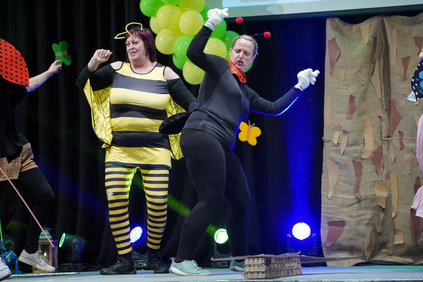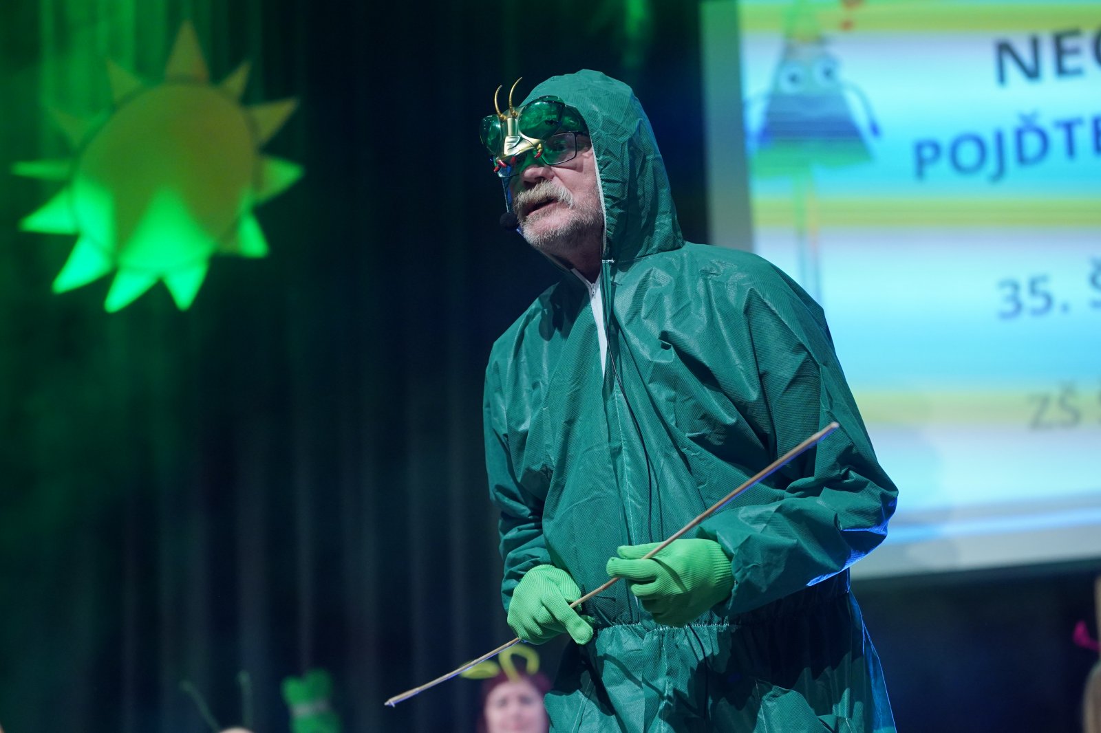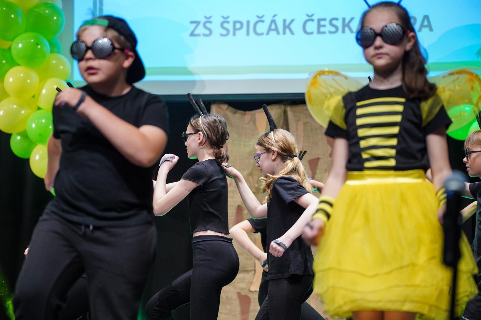 Vzpomínky a zážitky nám však zůstanou a že je na co vzpomínat! Tak třeba malé berušky a mravenečci z 1. C, kteří zvládli v hudbě tolik těžkých prvků, dokonce i hru se světlem. Také nebojácné výskoky z trampolíny žáků ze 4. B, přežití smradlavého brouka ze 4. A nebo úsměvná Rozinka ze 3. A, která se svými spolužáky při hodině přírodopisu viděla metrového komára. Předvedli se nám fotbalisté, tanečnice, krotitelé duchů či hmyzáci a pokud se člověk na chvíli zasnil při skladbě, kterou na housle hrála Denisa z 8. D, mohl slyšel cvrčka. Jakub ze 6. A připomínal svým zahraným tónem na saxofon zvuk čmeláka, ale potom zahranou skladbou všechny překvapil. Zajímavé bylo sledovat příběh Šmoulů ze 7. D, kteří si svůj příběh sami napsali. Krásně čistě zněl sálem zpěv malého kolouška Vojtíška z 3. A, který miluje kapelu Jelen. Milým překvapením byly malé gymnastky i nejmenší žáčci naší školy z přípravných tříd. A kdo by neznal nebo v životě neměl klíště? Slavná to scénka, kterou nám připomněli žáci z 8. C. Podium v kulturním domě Crystal na chvíli patřilo i oceněným žákům, kteří významně reprezentovali školu v různých soutěžích. Starší ročníky v hledišti mohli zavzpomínali na své dětství při textu polámal se mraveneček. A rychlostí, skoro takovou, jakou hrály dívky z flétnového souboru Růžičky nebo pospíchala Barbora z tábora za rodiči domů, se řítíme k závěru, který patřil učitelskému vystoupení. Učitelé a asistenti, se tak jako většina dětí při svých vystoupeních, proměnili v hmyz, o kterém si spoustu lidí myslí a je i přesvědčeno, že jej nepotřebují, je otravný, zbytečný... Není však nejvyšší čas zamyslet se nad jeho užitečností, přínosem, ale bohužel i úbytkem? Vždyť všechno souvisí se vším...A tak...nech brouka žít!