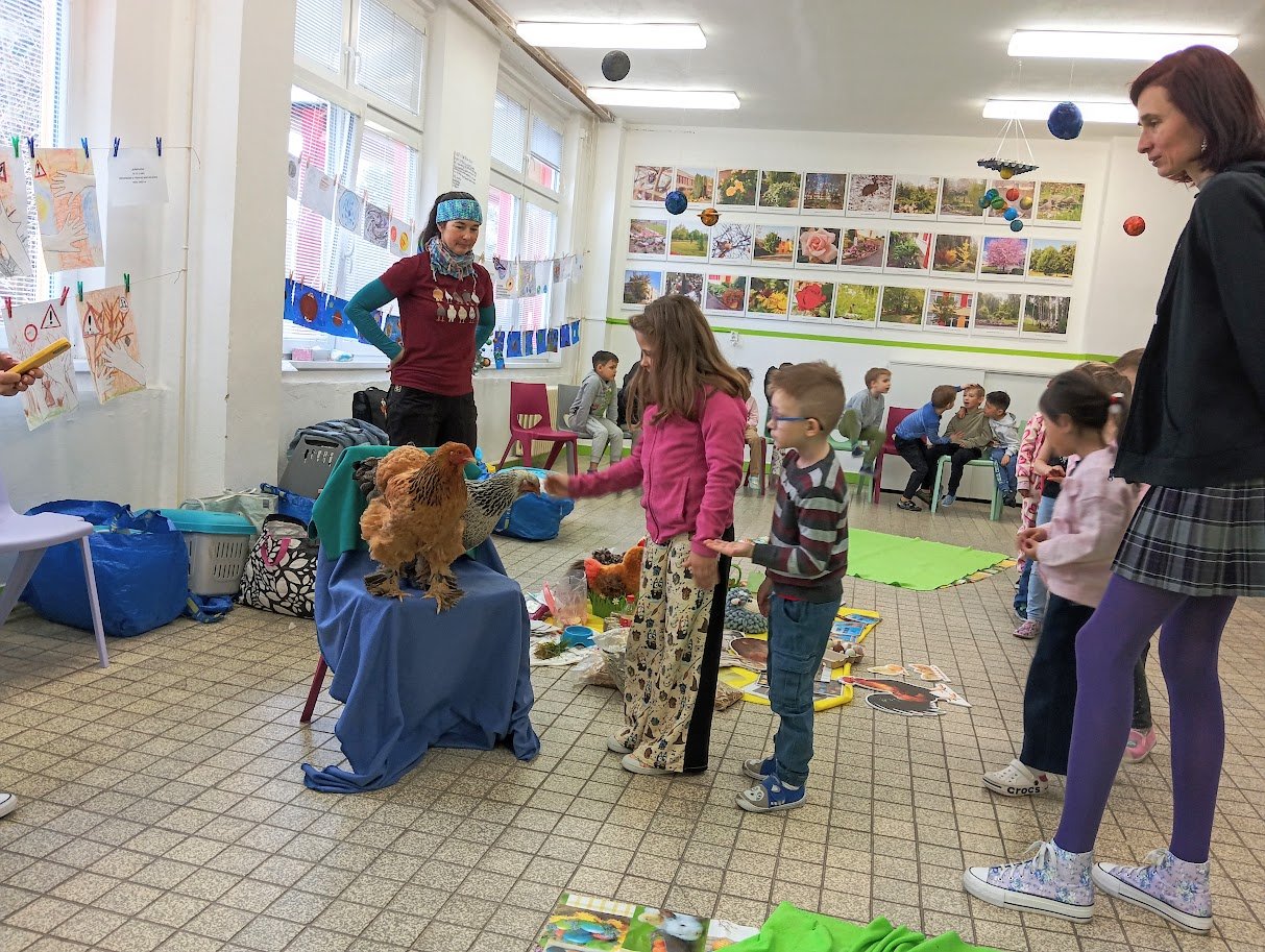 Nejmenší školáci zažili opravdu názornou výuku prvouky. Do školy zavítal Adélčin dvoreček a děti tak na vlastní kůži zažily názornou výuku zaměřenou na domácí zvířata.