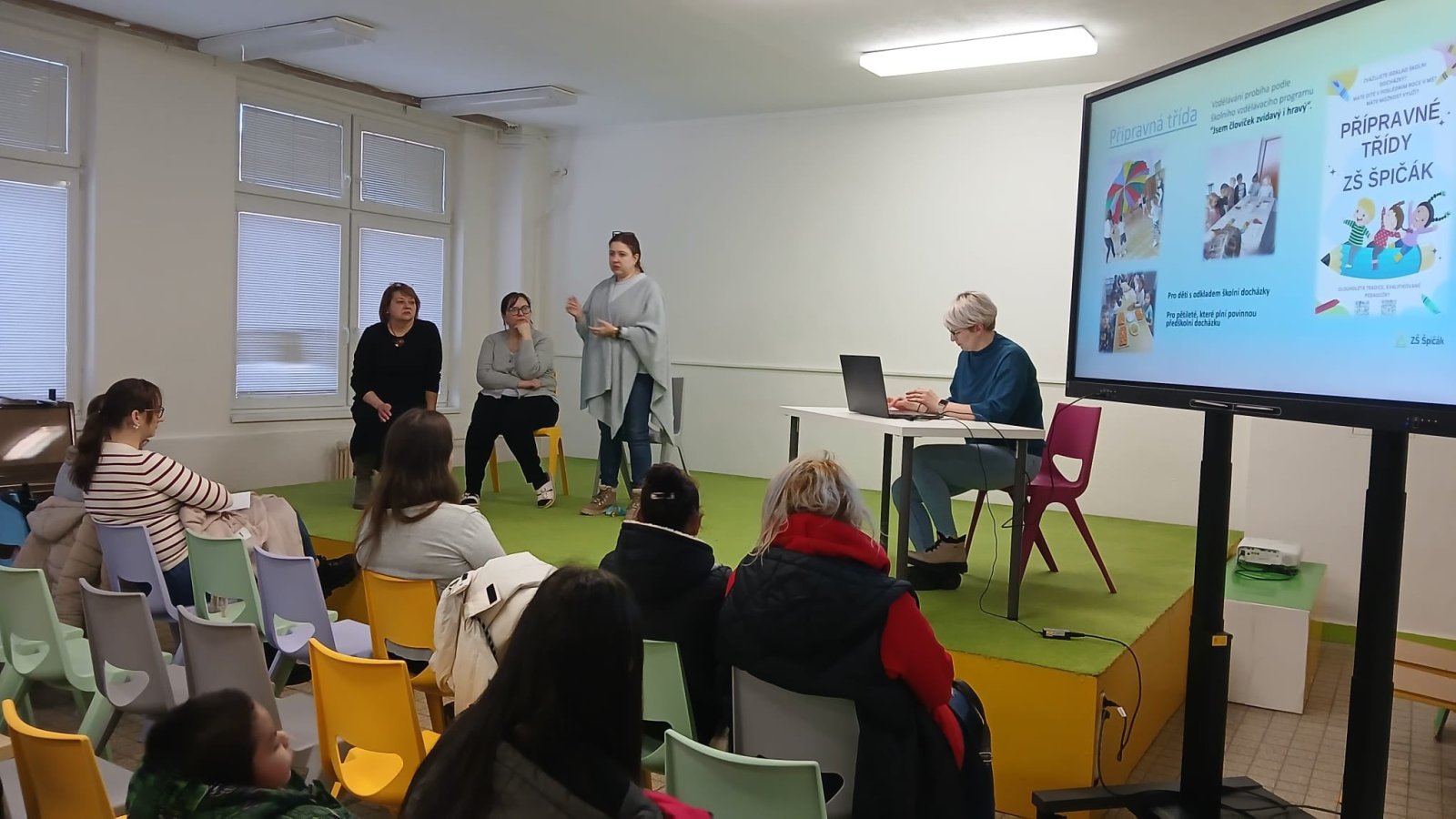 Příležitost seznámit se s tím, co na Špičáku nabízíme našim žákům i jejich rodičům, jak je to se zápisy nebo možností odkladu školní docházky pro příští školní rok, co ke školní zralosti říká speciální pedagog z poradny, který zároveň působí na škole, zjistit, že naše přípravné třídy jsou i pro děti pětileté nebo se prostě na cokoli zeptat byla v úterý 27. a čtvrtek 29. ledna na besedách pro rodiče. V závěru si zájemci mohli ještě projít školu a podívat se do třetího pavilonu určeného pro naše nejmenší.