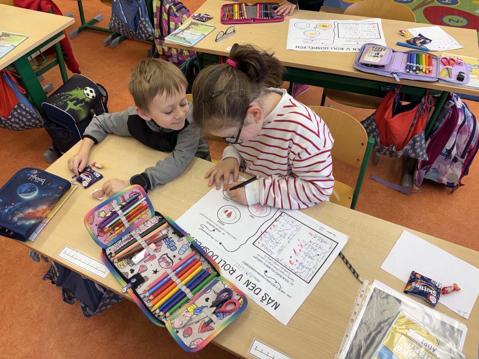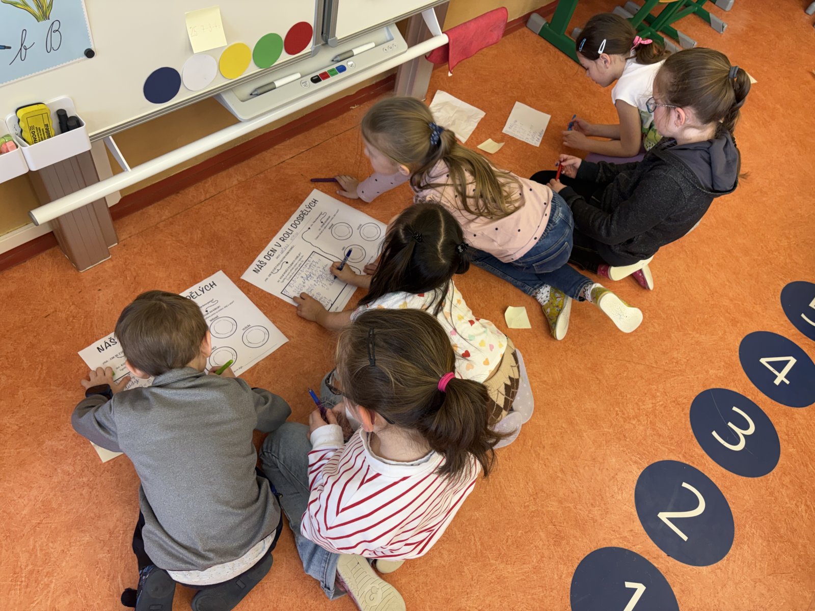 Začali jsme pohádkou o dětech, které si hrály na dospělé a povídáním, co všechno dospělí můžou. Poté přišel na řadu první úkol – vydělat peníze. Ve spolupráci ve dvojici děti řešily příklady a přepisovaly slova, čímž vydělávaly peníze. Následně si výdělek spočítaly. Ze svého výdělku musely nejprve zaplatit daně a poté mohly začít nakupovat. Úkolem dětí bylo nakoupit pro jejich dvojici snídani, oběd a večeři, vše zakreslit do pracovního listu a samozřejmě zaplatit. Některé dvojice si vše chytře rozvrhly, aby si něco i ušetřily. Na závěr jsme den v roli dospěláků zhodnotili a shrnuli nově získané informace i zážitky.