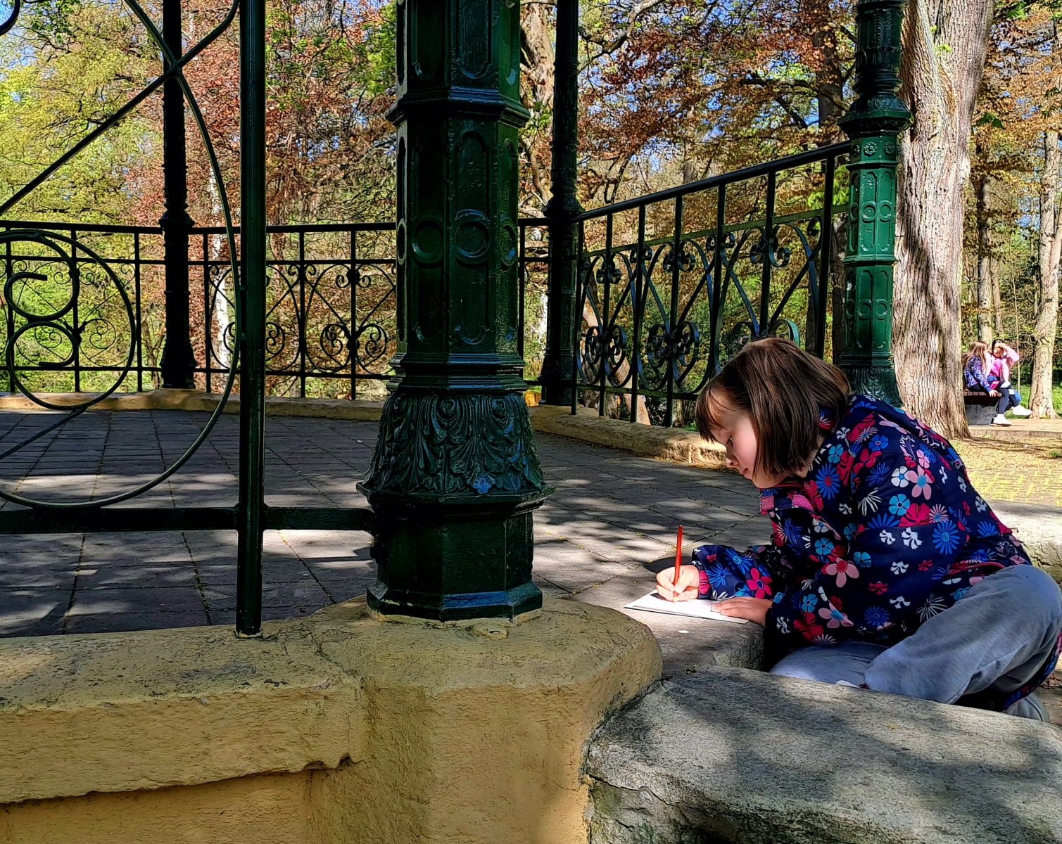 A dnes jsme se ještě vydali na procházku do městského parku, kde děti zkoumaly a poté kreslily zajímavé stromy a rostliny..