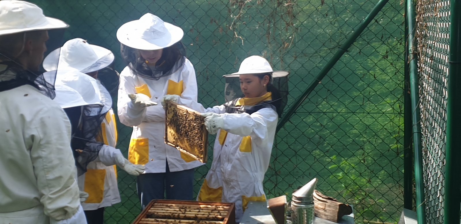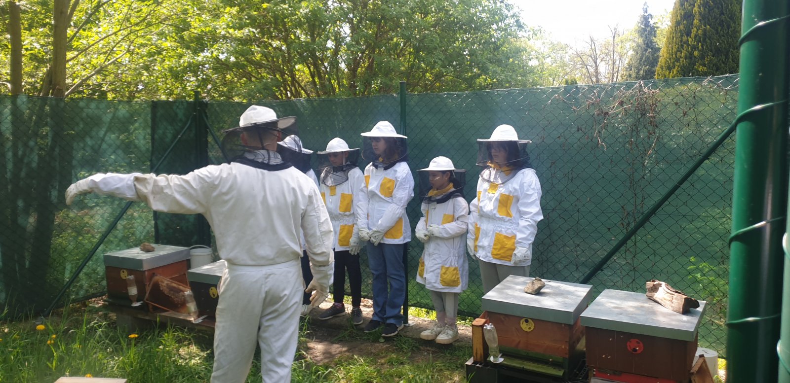 Že med není zadarmo a bez práce, se přesvědčil náš tým u včelých úlů dne 30. 4. 2025 na naší školní zahradě.