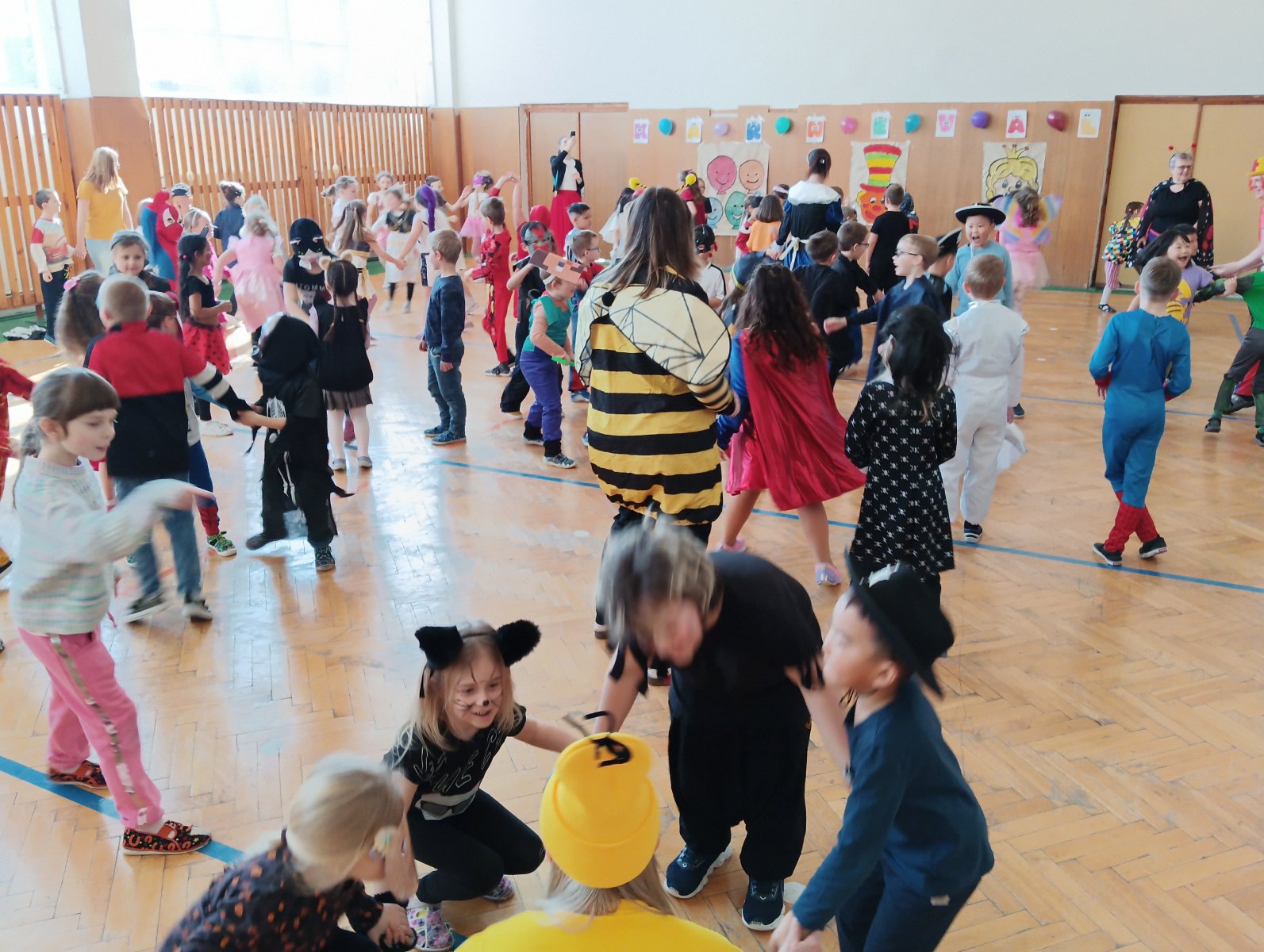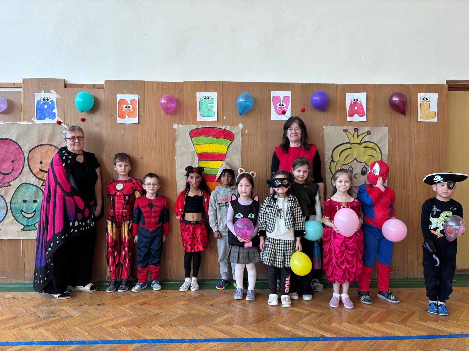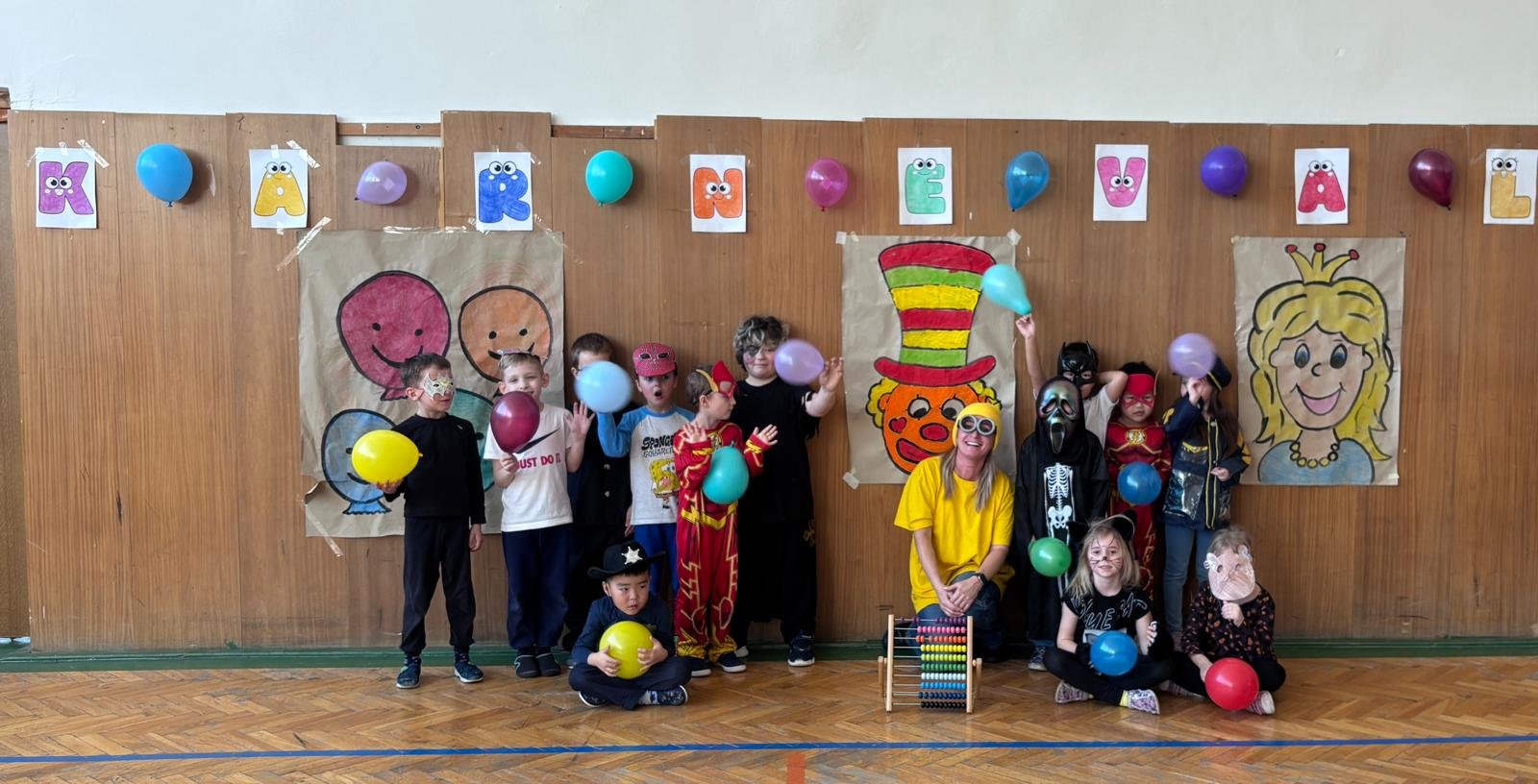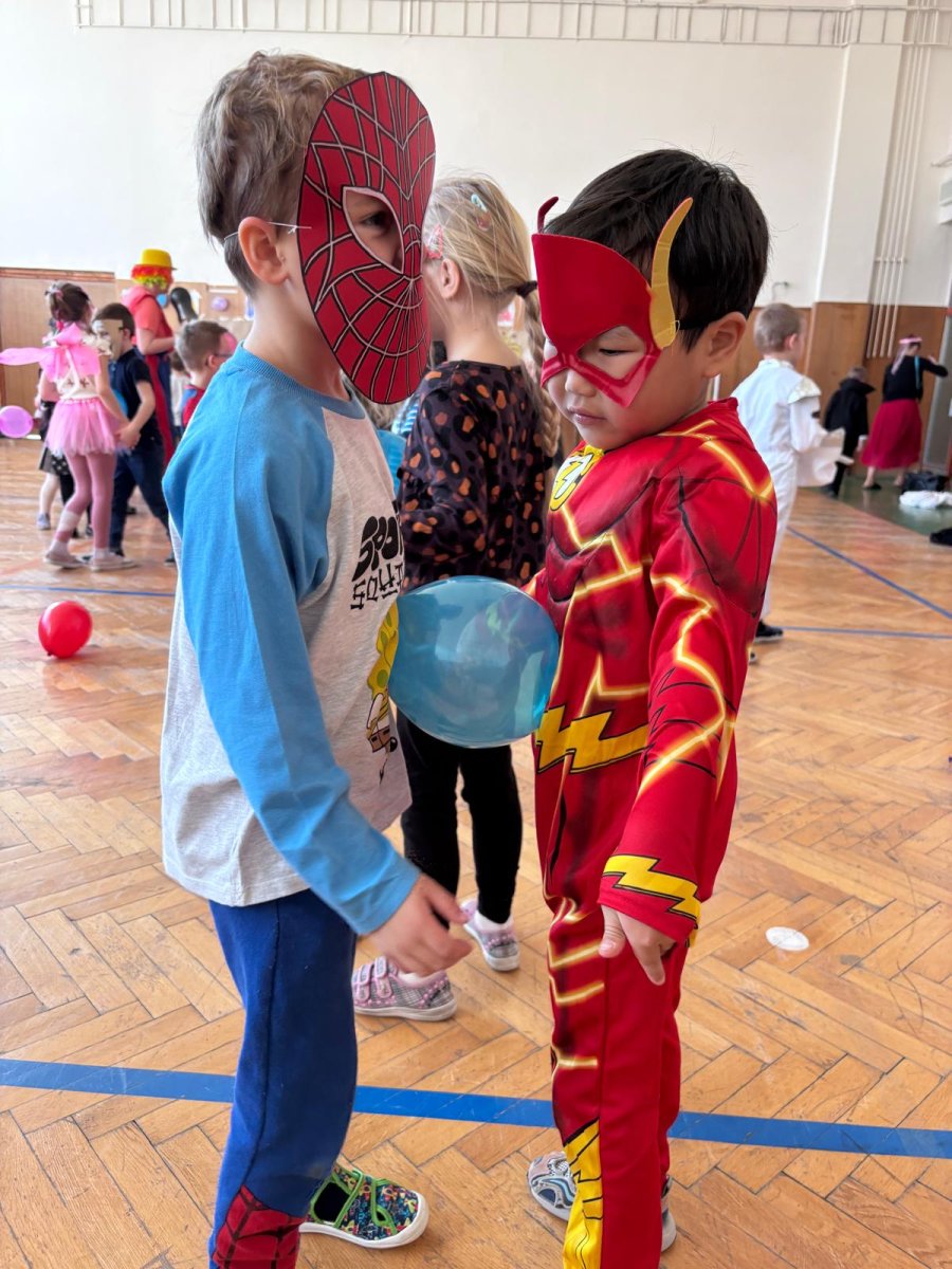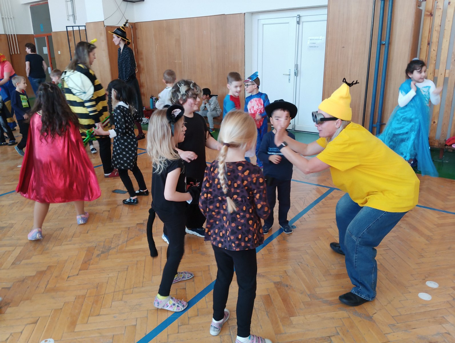 Dopolední výukou se postupně prolínalo karnevalové téma, které vyvrcholilo rejem v maskách v tělocvičně školy. Děti si společně zařádily, naučily se jednoduchý taneček a zvládly i spolupráci s kamarádem při tanci s balónkem. Žízniví a unavení se pak spokojeně všichni vydali na jarní prázdniny.