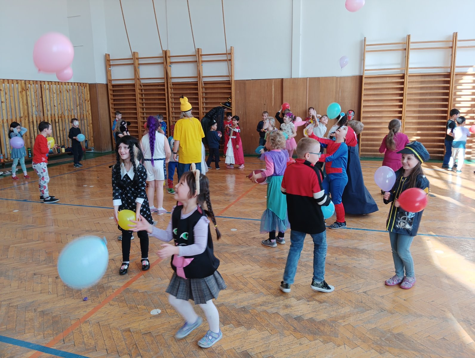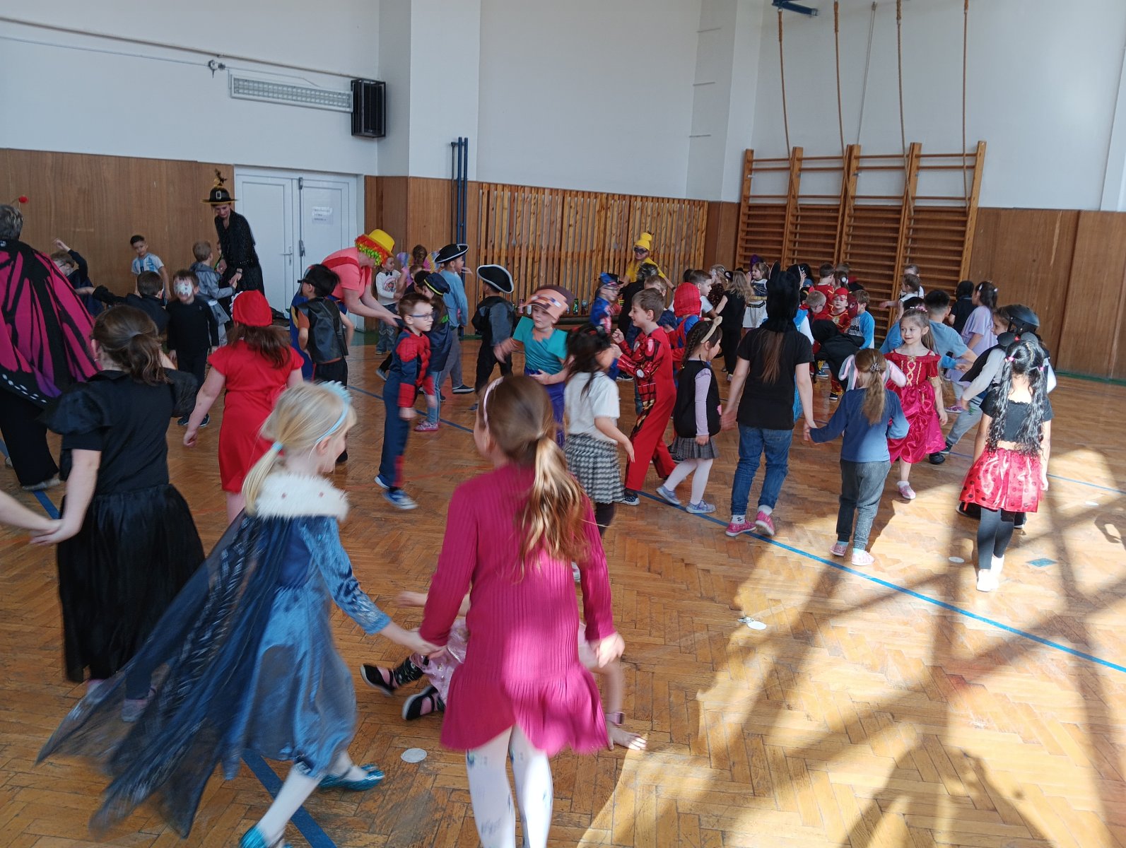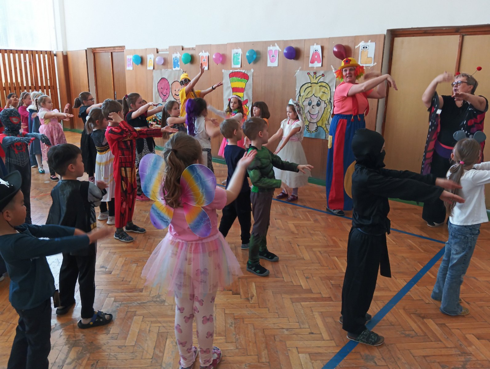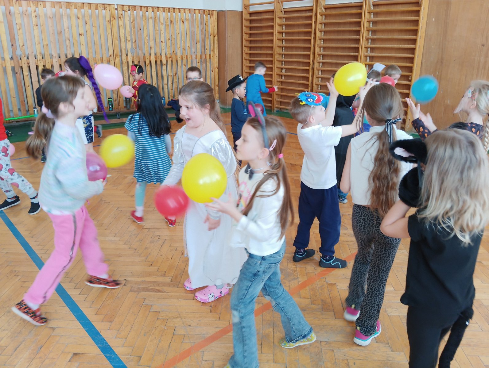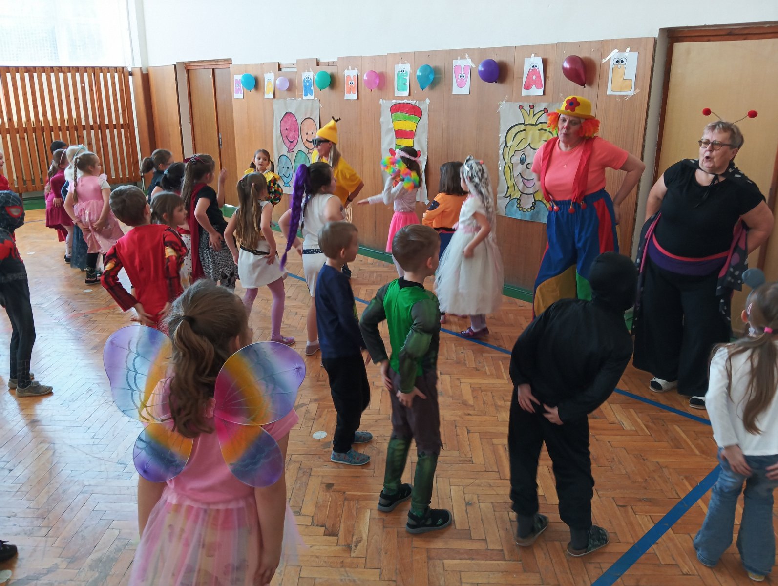 Dopolední výukou se postupně prolínalo karnevalové téma, které vyvrcholilo rejem v maskách v tělocvičně školy. Děti si společně zařádily, naučily se jednoduchý taneček a zvládly i spolupráci s kamarádem při tanci s balónkem. Žízniví a unavení se pak spokojeně všichni vydali na jarní prázdniny.