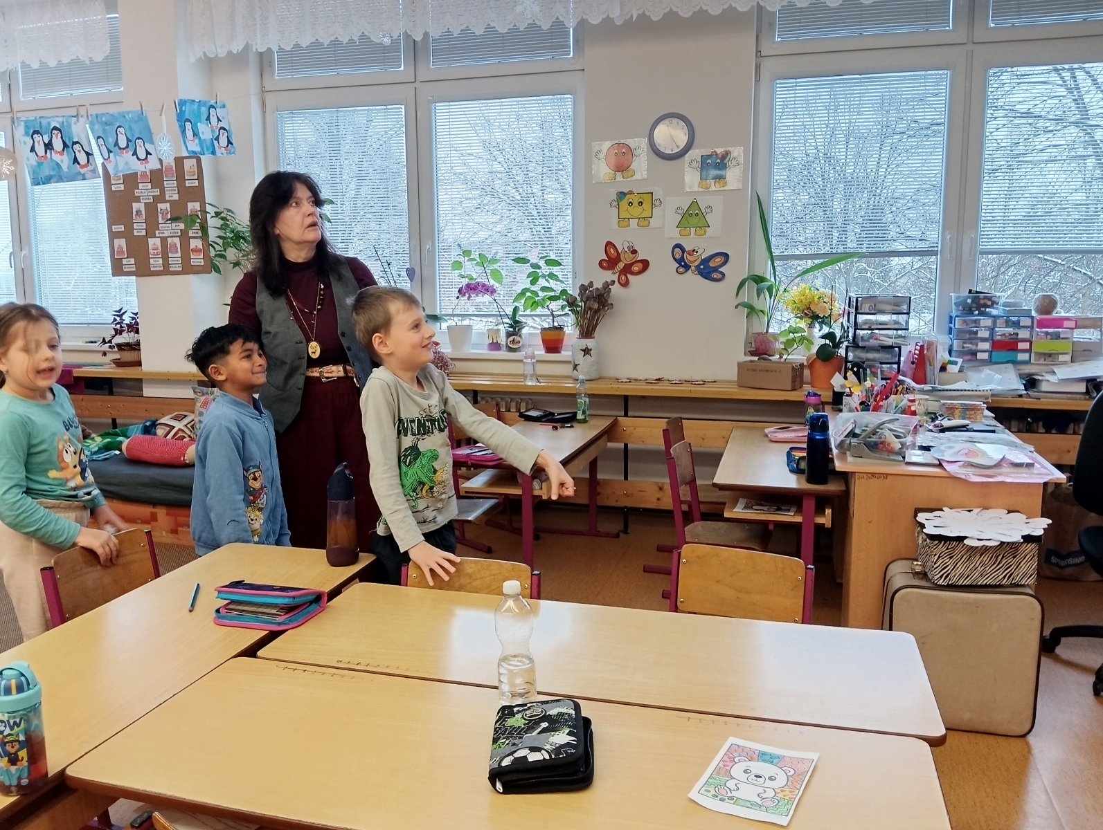 Nejdříve si děti na pracovním listě porovnaly velikosti sněhuláků, pak spočítaly z kolika jsou uděláni koulí. Vyzkoušely paměť, když vzpomínaly, jakou měl který sněhulák čepici. Nejlepší ale přišlo nakonec. Po kontrole jim z pracovního listu zbyla koule, jako stvořená na správnou bitvu. Také se házelo do výšky a do dálky na cíl. Cílem nebyla paní učitelka, ale sněhulák nakreslený na tabuli.