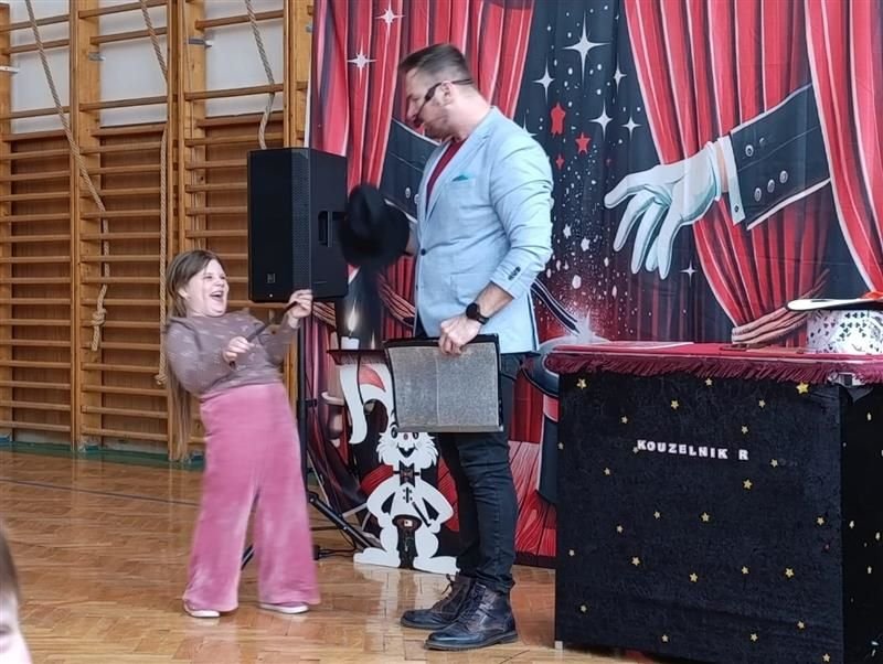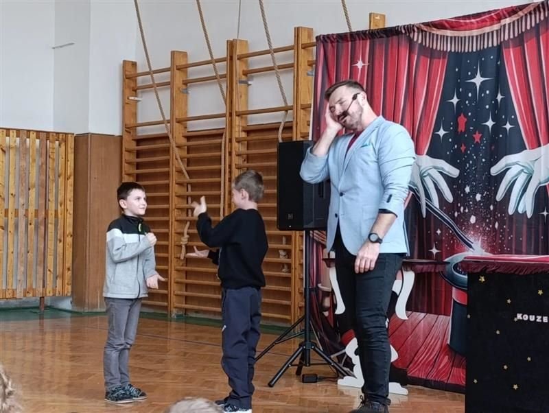 zažily děti tento týden ve školní družině. Znovu po roce je navštívil kouzelník Reno se svým programem plným čar a kouzel.