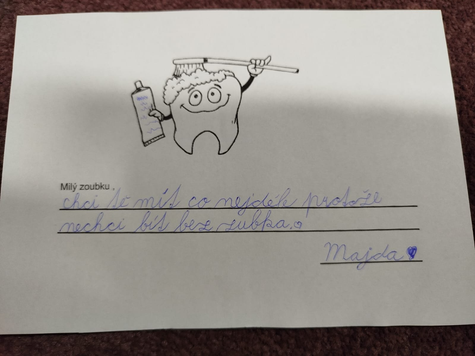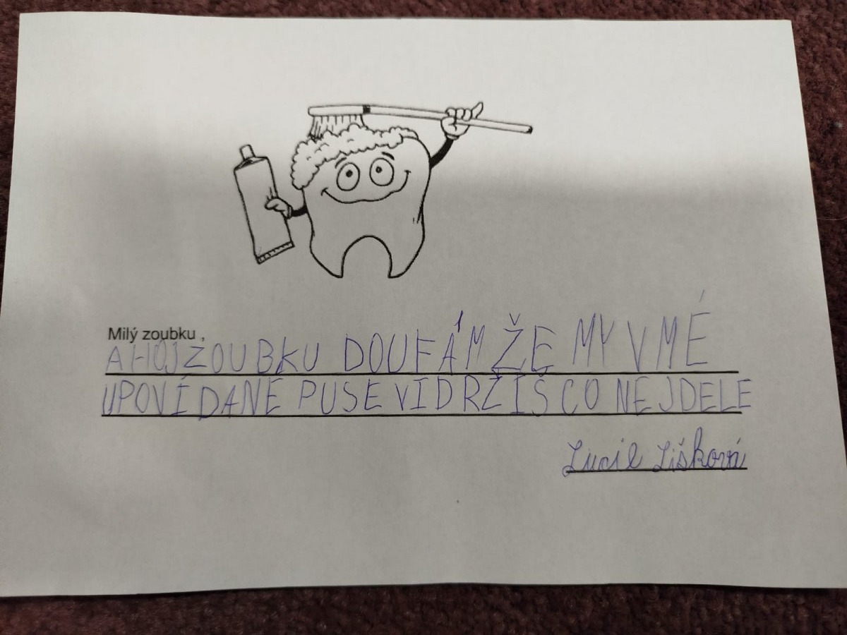 Diskuse se přirozeně přenesla i k péči o chrup, kde si děti připomněly, proč je důležité pravidelně čistit zuby, a jak by to asi dopadlo, kdyby se o ně nikdo nestaral. Kdo je zoubková víla, co jim nosí apod.
