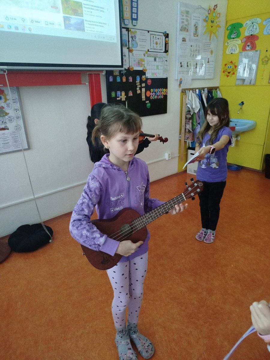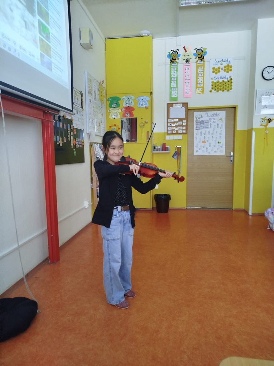 Hlavním tématem dnešního dne byl památný dub knížete Oldřicha a známá pověst o Oldřichovi a Boženě, která v sobě spojuje historii, přírodu i lidské osudy. V úvodu lekce jsme ve hře špioni odtajnili jména v pověsti vystupující. Dále jsme se zamýšleli, o čem by to asi mohlo být. V další hodině nebylo cílem jen poslouchat příběh, který jsme nahlas četli, ale především ptát se, přemýšlet, porovnávat a hledat pravdu ukrytou mezi fakty a domněnkami. Následně jsme si ukázali i památný starý dub nedaleko Loun, řekli jsme si, proč je památný a jaký význam pro nás má. Zopakovali jsme si základní znalosti o dubu, doplňovali údaje do pracovního listu a vytvářeli svatební oznámení pro Oldřicha a Boženu. V průběhu dne nám spolužačky zahrály na hudební nástroje, na které se učí.