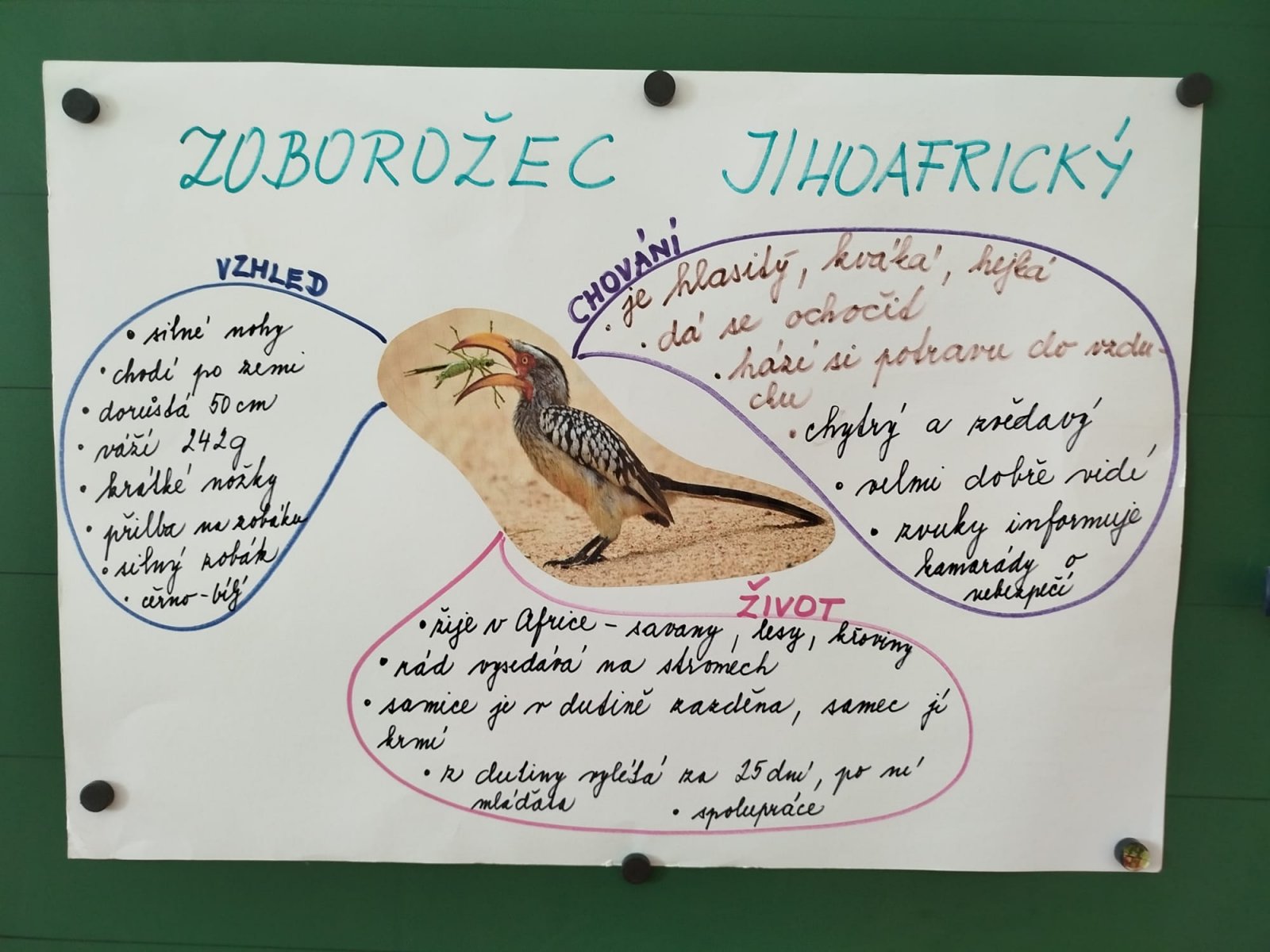 Díky tomuto dni jsme poznali fascinujícího zoborožce jihoafrického, ale zároveň jsme si vyzkoušeli týmovou spolupráci, kritické myšlení, prezentaci informací i kreativní tvorbu.