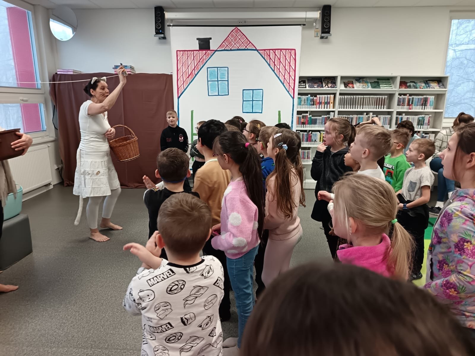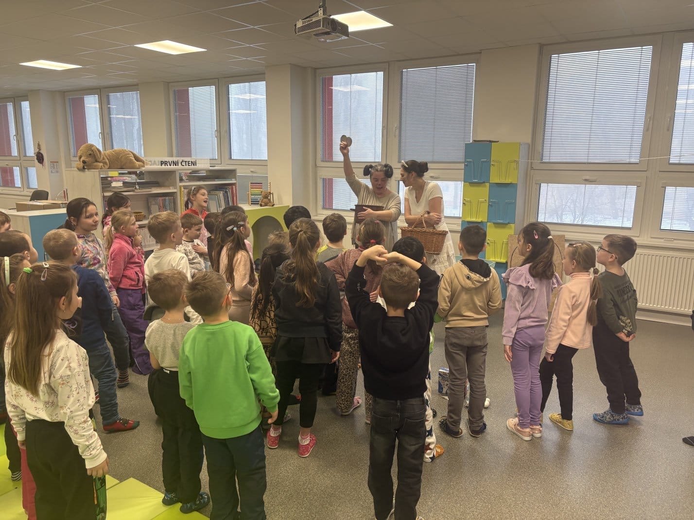 Paní, které už děti znají z několika návštěv knihovny, měly představení hezky a vtipně připravené. A protože pohádky jsou opravdu známé, děti hodně napovídaly...