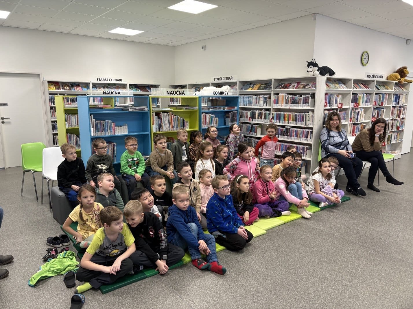 Ve středu šli žáci ze všech prvních tříd podívat do knihovny na dvě krásné, známé pohádky: Jak pejsek s kočičkou umývali podlahu a Jak pejsek s kočičkou pekli dort.