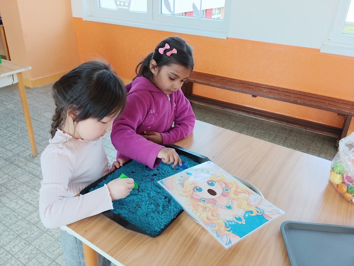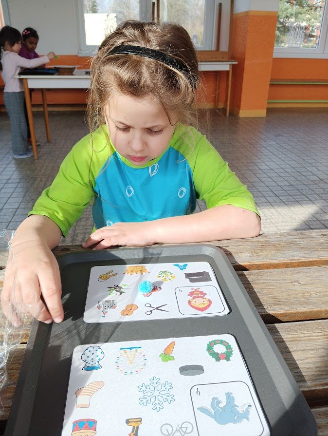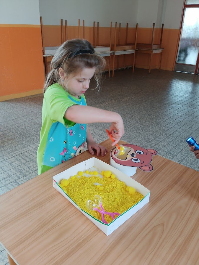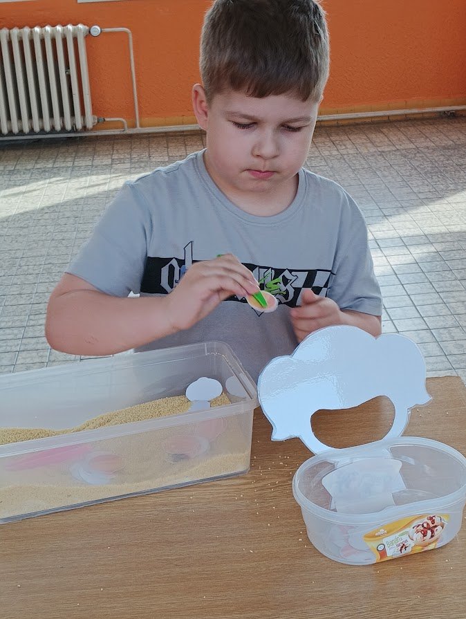 Během plnění připravených aktivit prozkoumaly různé materiály, procvičily prstíky a spolupráci při plnění úkolů. Všichni se snažili si vyzkoušet všechna stanoviště a pod dohledem paní učitelky a asistentky také zvládli určovat první písmenko ve slově, spočítat počet kostek na stavbu hradu a nebo určit počet a délku slabik ve slově.