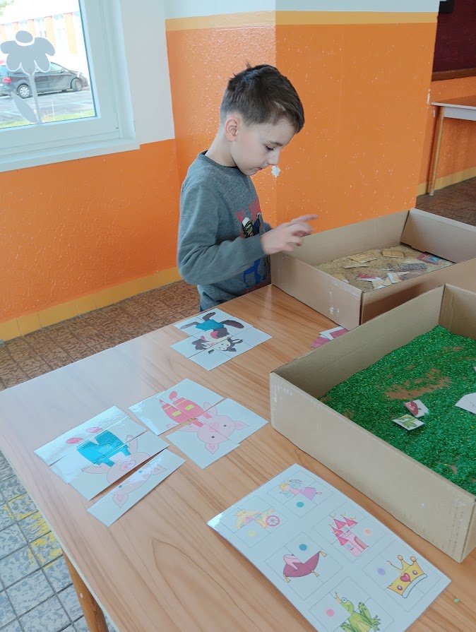 Dnešním dnem se děti z Červené pastelky rozloučily s tématem pohádek pohádkovým smyslohraním, které bylo tentokrát zaměřeno na rozvoj jemné motoriky a zrakového vnímání.