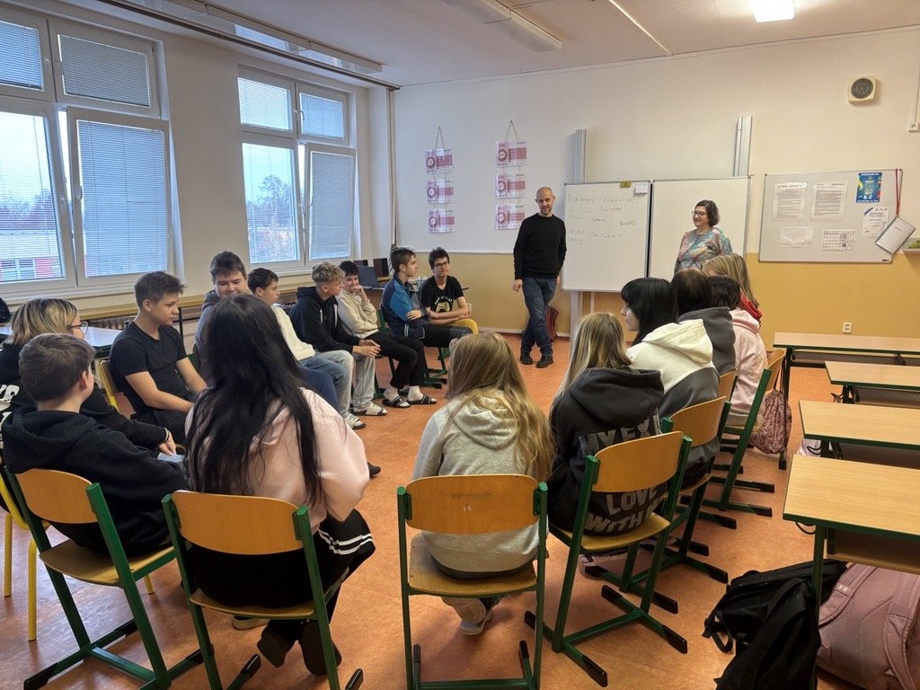 Beseda přinesla spoustu praktických informací a podnítila žáky k zamyšlení nad tím, jaká rozhodnutí dělají a jak jsou za ně zodpovědní. Atmosféra byla otevřená, podnětná a zaměřená na prevenci a podporu bezpečného chování.