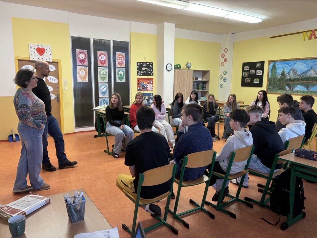 Ve čtvrtek proběhla v 9. třídách další beseda s pracovníky Probační a mediační služby, která žákům přiblížila, jak funguje trestněprávní odpovědnost u dětí a mladistvých.