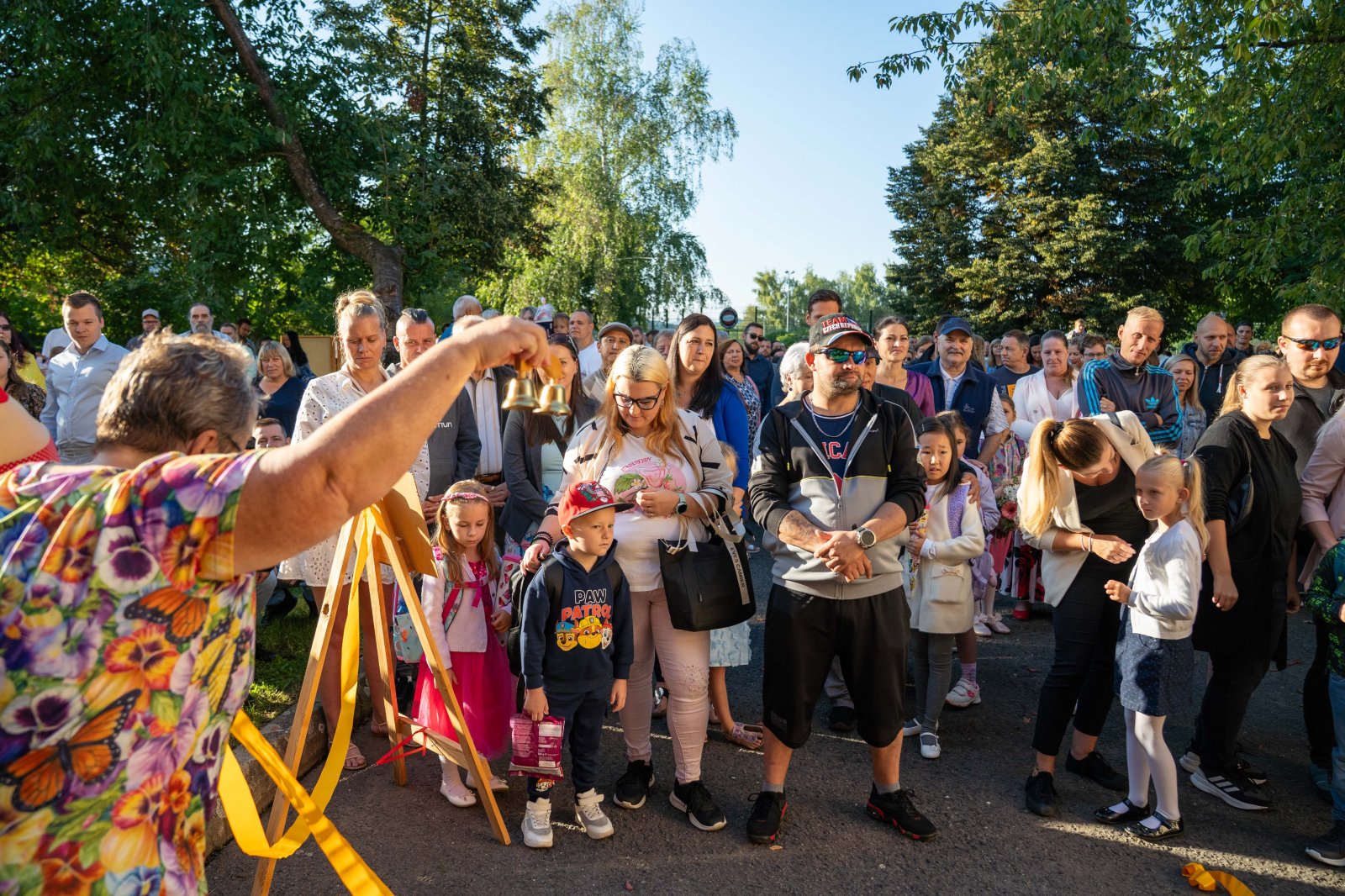 Prvňáčky a děti z přípravných tříd spolu s jejich rodiči i prarodiči přivítal na školní zahradě kolektiv pedagogických pracovníků v čele s paní ředitelkou a paní Nelou Cyrmon Theerovou.