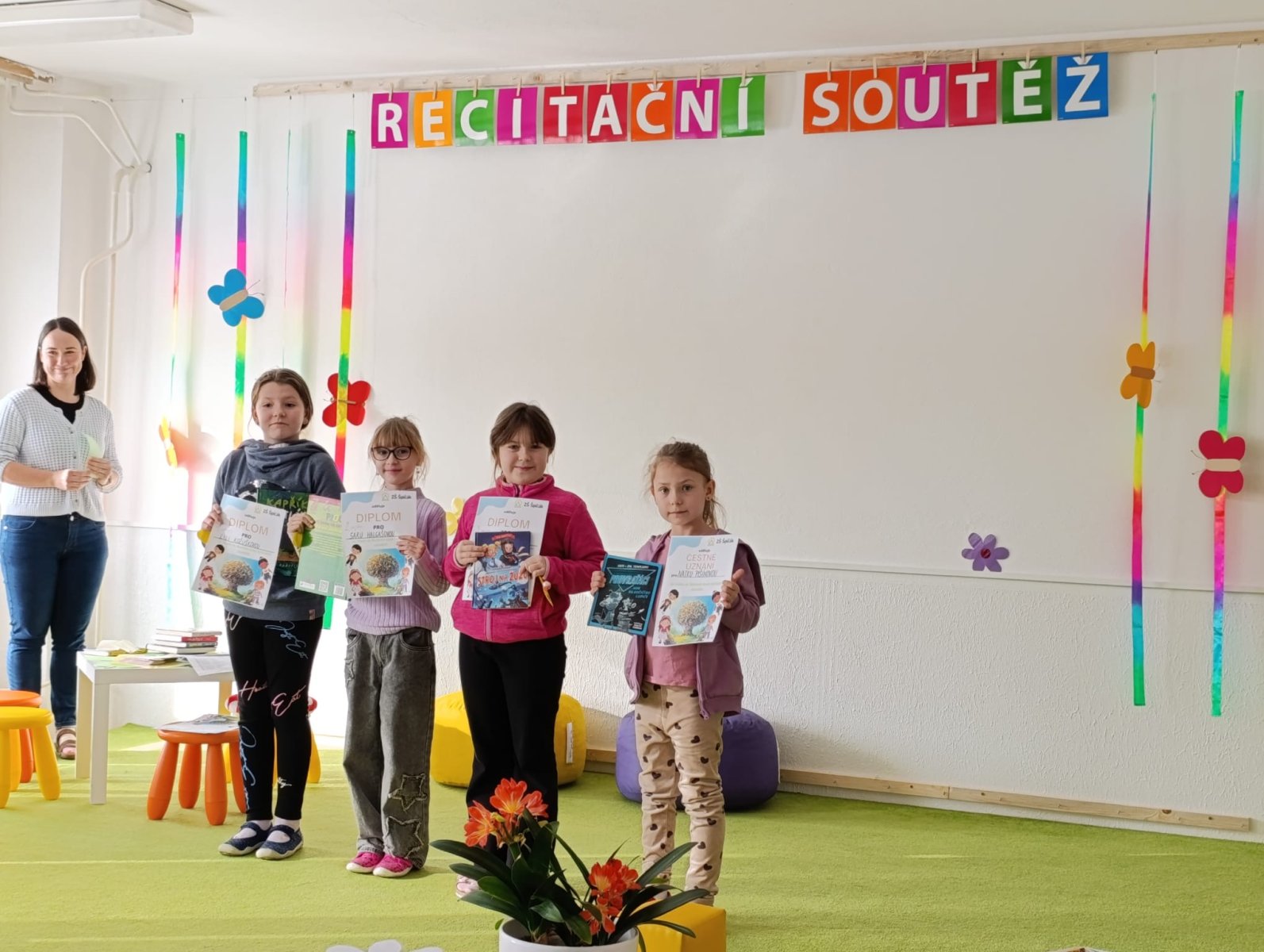 Velká gratulace všem recitátorům — vystoupit před publikem chce odvahu a tu jste měli obrovskou . Vítězové z obou kategorií postupují do okresního kola, budeme držet palce!