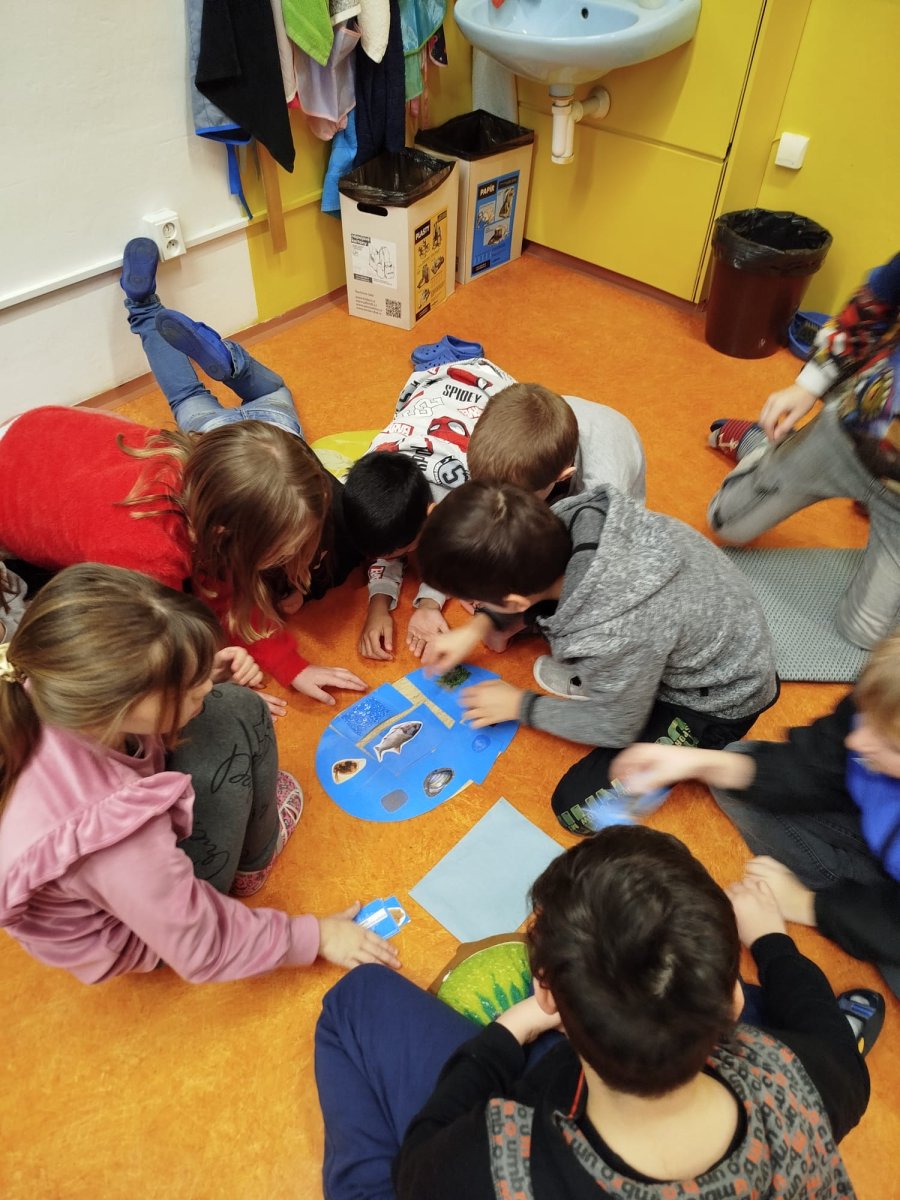 V další části se žáci rozdělili na „řeku“ a „rybník“ a třídili, co kde můžeme najít a kdo vodě pomáhá zůstávat čistou. Zaměřili se také na odpad a věci, které do kanalizace rozhodně nepatří. Na závěr si vyzkoušeli i filtrování vody.