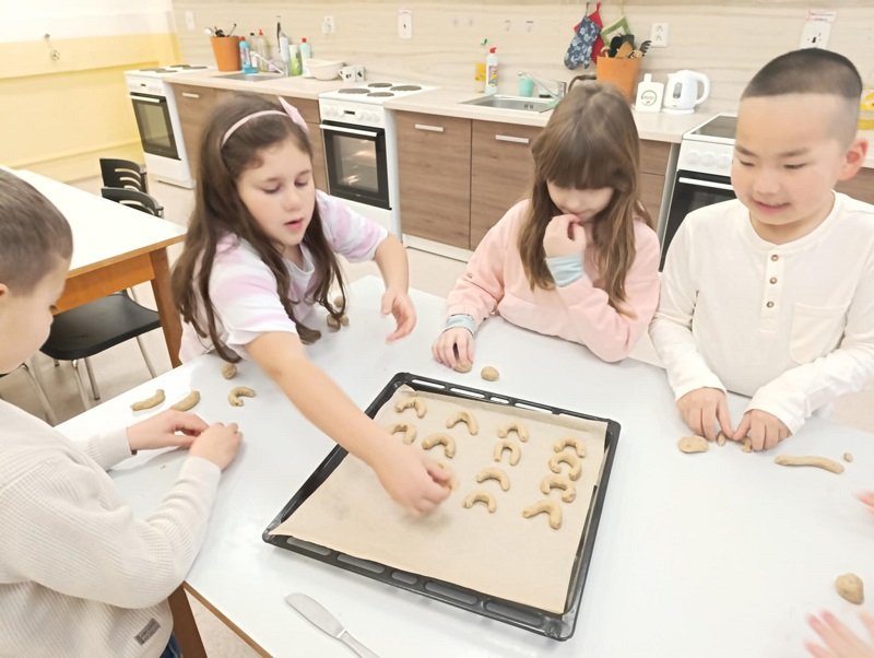 Pro některé žáky to byla první návštěva této kouzelné učebny. Po seznámení s pravidly a bezpečností, se všichni pustili do hrátek s těstem na vanilkové rohlíčky. Nejdříve kulička, pak váleček… byla to fuška, ale nakonec se dílo podařilo. Plný plech voňavých rohlíčků jsme upekli, obalili v moučkovém cukru, a odpoledne v oddělení školní družiny společně ochutnávali.