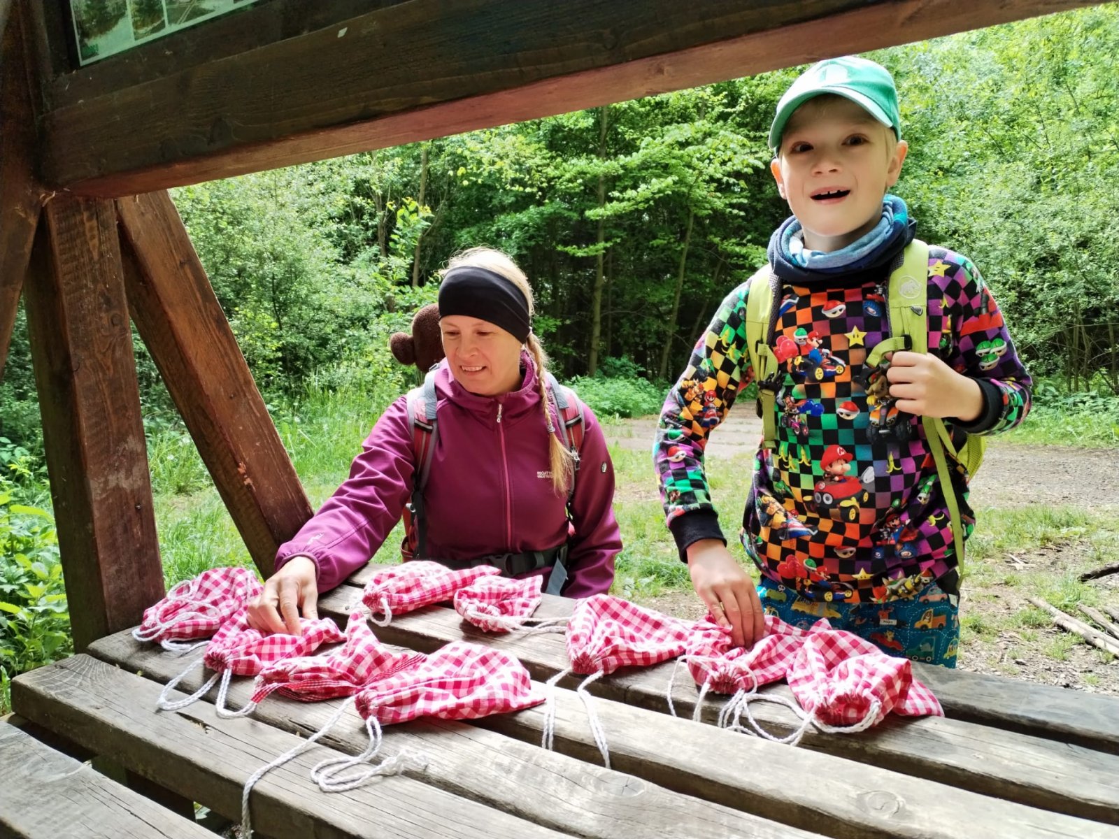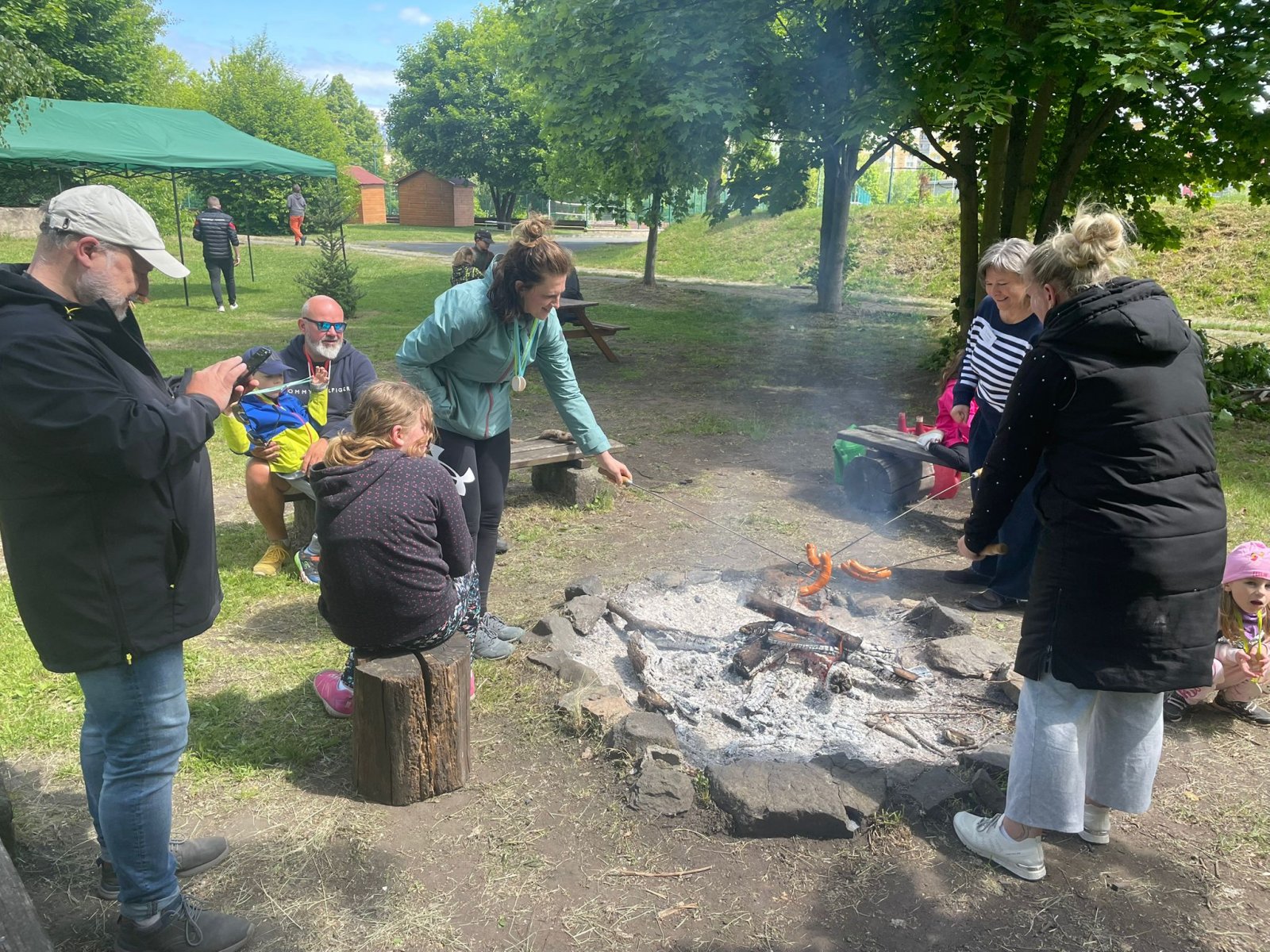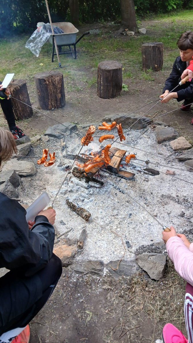 Po splnění úkolů na stanovištích došli do cíle. Tam kromě diplomu a keramické placky mohli posedět a opéct si buřty u připraveného ohně.