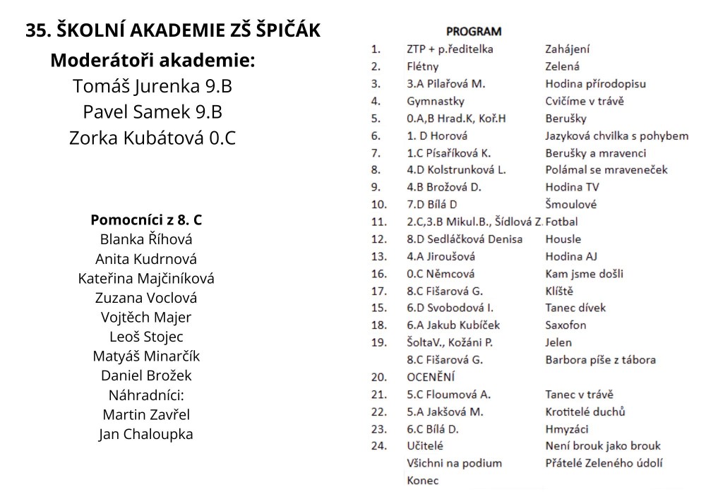 na 35. akademii naší školy s názvem „Nech brouka žít, aneb pojďte s námi do přírody“, která se uskuteční 3. června 2025 v KD Crystal od 17.00...