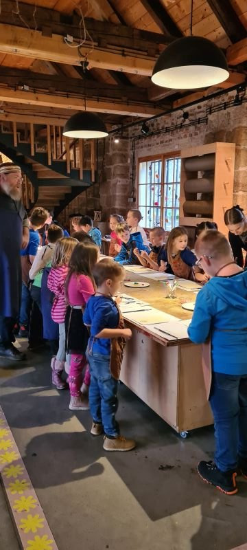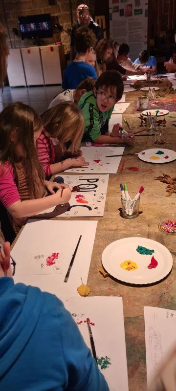 Na žáky zde čekala podzimní dílnička. Jako první děti dostaly podzimní kvíz, pak následovala rozcvička a šlo se na věc. Každý si vyrobil svou knihu a vlepil si do ní plátýnko, kde si děti mohly vyzkoušet kreslit fixami na textil, barvičkami a tiskat razítka. Děti si to moc užily a už se těší, že se do Centra zase na jaře vrátí.