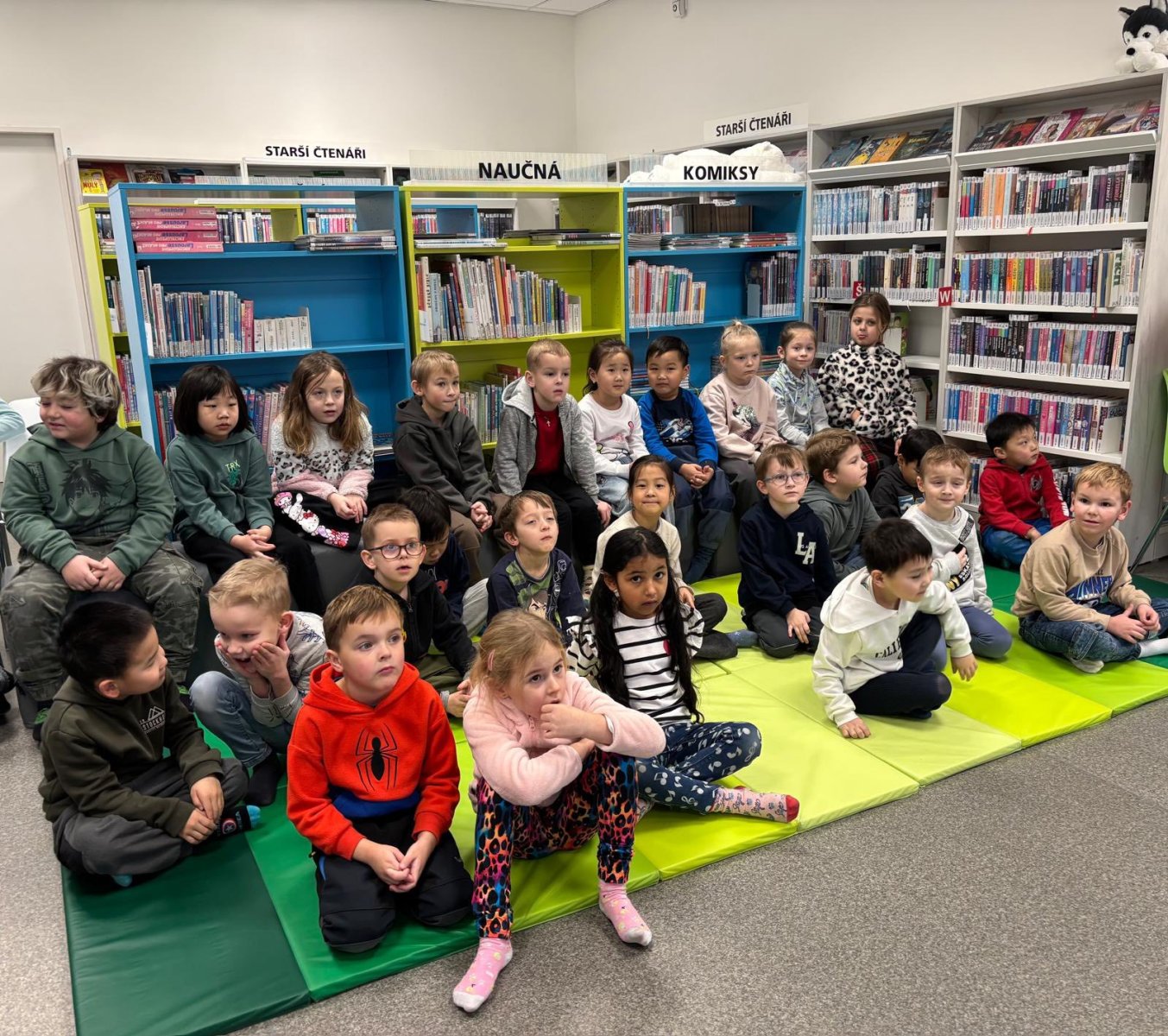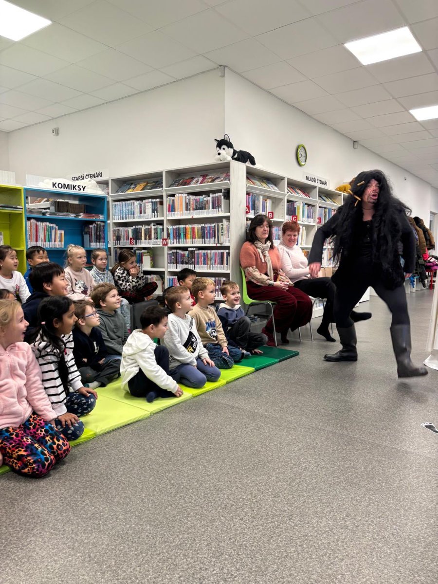 Děti z přípravných tříd to zažily na vlastní kůži. Knihovna se proměnila na naše největší hory Krkonoše i se zasněženým Špindlerovým Mlýnem a paní knihovnice v dokonalé postavy z pohádky Bob a Bobek na horách. Za zimními radovánkami se do Špindlu vydali králíci z klobouku Bob a Bobek. Jenže netušili, co je čeká. V Krkonoších se usídlil Yetti a všechny turisty vyhnal. Bob a Bobek našli odvahu a rozhodli se, že všechno dají do pořádku. A tak děti během chvilky zažily s králíky koulovačku, honičku, zasypání lavinou i pomoc Yettimu. Nakonec všechno dobře dopadlo a všichni si přišli na své... králíci si užili pobyt na horách, Yetti už nebyl sám a děti se přesvědčily, že v pohádce je dobro, zlo, legrace, láska, odvaha i ponaučení. Moc děkujeme za herecké výkony všem skvělým paním knihovnicím a těšíme se zase příště! Prý to bude pohádka O pejskovi a kočičce.