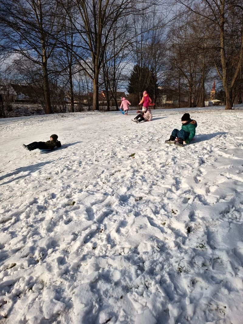 Na začátku nového roku nenapadl sníh, tak jsme si zimu začali tvořit. Děti opět malovaly, kreslily, lepily, stříhaly, a tak vznikly velmi hezké práce. Zdobí oddělení i chodby družiny. Nezapomněli jsme ani na blížící se olympiádu. S dětmi o ní besedujeme a vyhledáváme, kterým našim borcům budeme fandit. Projekci máme připravenou. Některé paní vychovatelky se také vydaly s dětmi nakrmit zvířátka a ptáčky. A nakonec jsme se dočkali i sněhu, tak pokud jsou dobré podmínky pro bobování, vyrážíme každý den na nejbližší kopce. Díky tomu tráví děti dost času venku, a posilují svojí fyzickou kondici, ať už je to třeba jen při stavění sněhuláků a koulování. Zimní měsíce jsou tak u nás plné společných zážitků, kreativity a radostného pohybu, který dětem přináší nová dovednosti a nadšení.