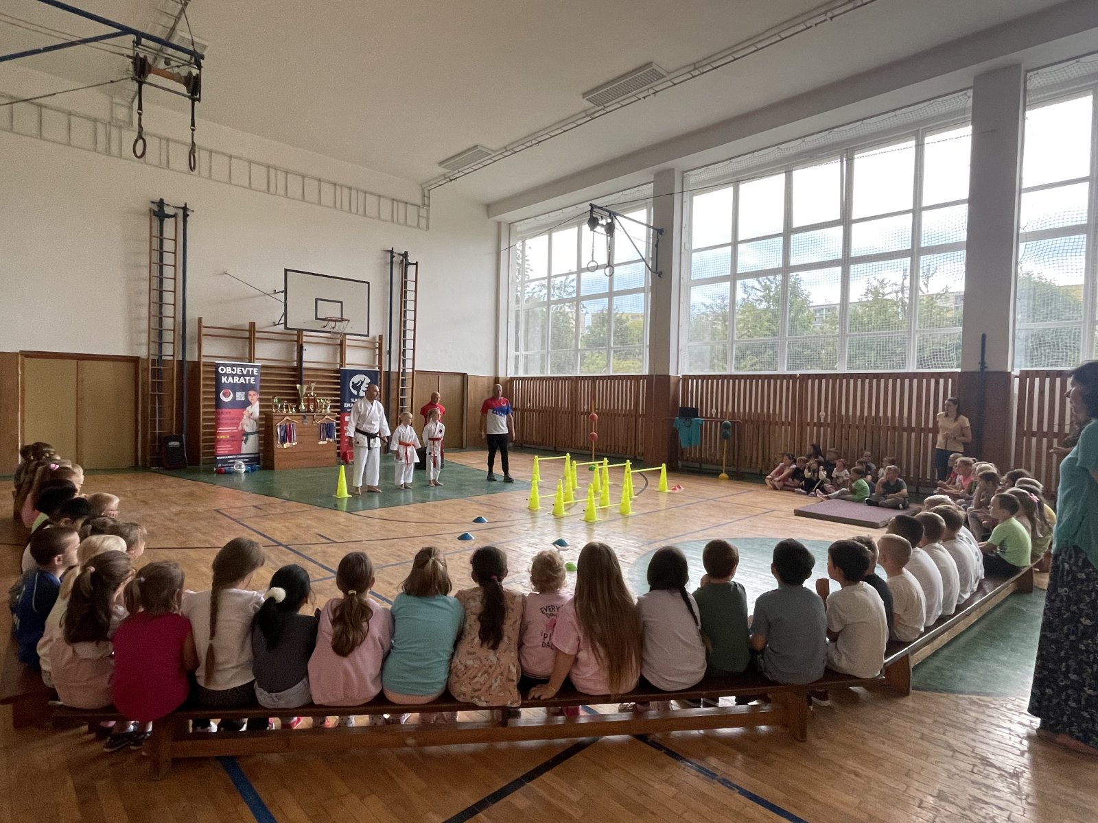 Prvňáčci na ZŠ Špičák začali školní rok s úsměvem! Během prvních dnů si užili poznávání okolí školy, seznámili se se svými novými kamarády a dokonce si vyzkoušeli ukázku karate pod vedením trenéra Poláka .