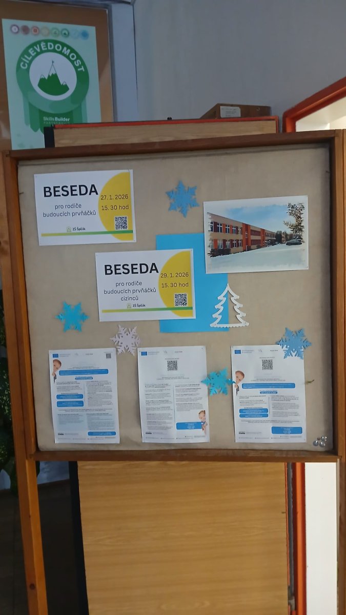 Příležitost seznámit se s tím, co na Špičáku nabízíme našim žákům i jejich rodičům, jak je to se zápisy nebo možností odkladu školní docházky pro příští školní rok, co ke školní zralosti říká speciální pedagog z poradny, který zároveň působí na škole, zjistit, že naše přípravné třídy jsou i pro děti pětileté nebo se prostě na cokoli zeptat byla v úterý 27. a čtvrtek 29. ledna na besedách pro rodiče. V závěru si zájemci mohli ještě projít školu a podívat se do třetího pavilonu určeného pro naše nejmenší.