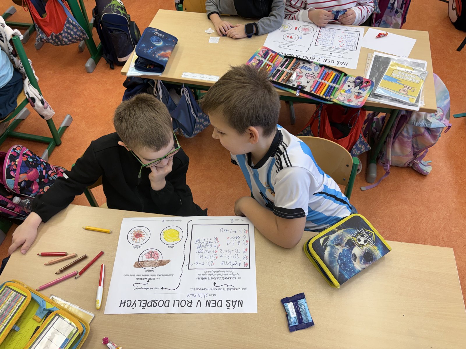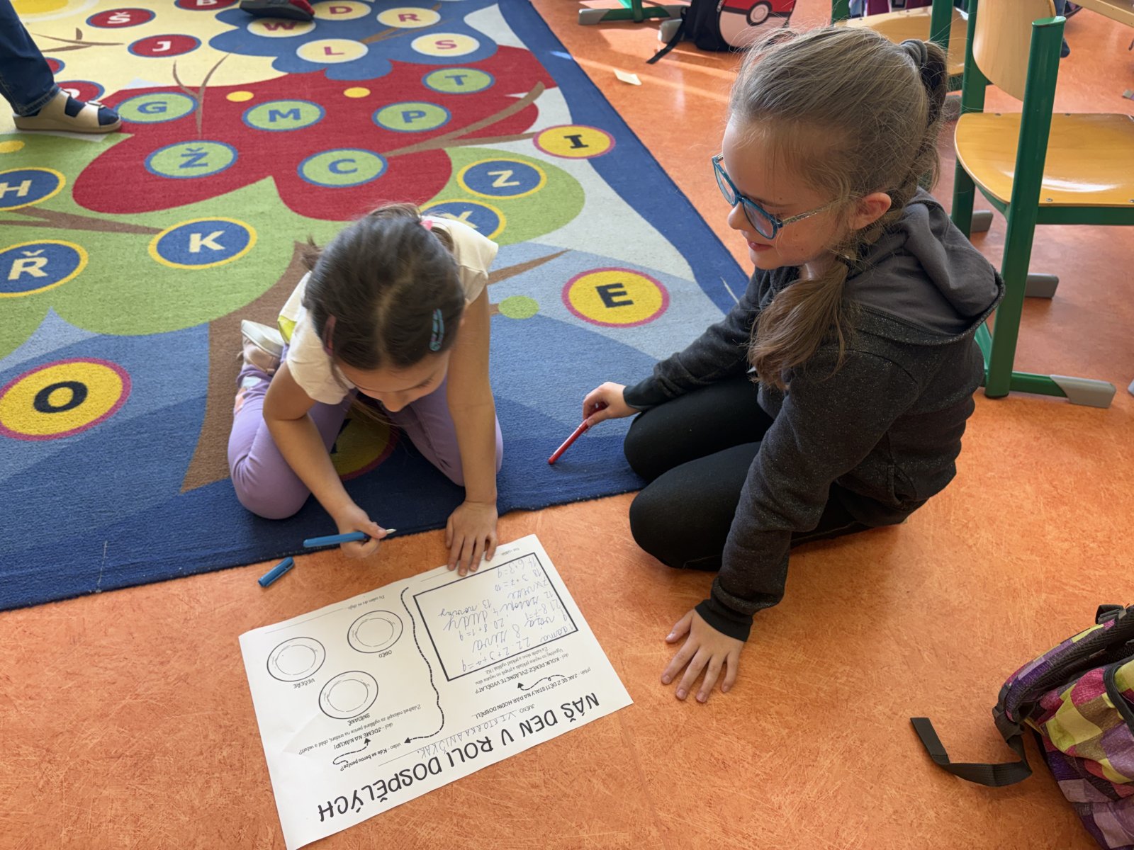 Začali jsme pohádkou o dětech, které si hrály na dospělé a povídáním, co všechno dospělí můžou. Poté přišel na řadu první úkol – vydělat peníze. Ve spolupráci ve dvojici děti řešily příklady a přepisovaly slova, čímž vydělávaly peníze. Následně si výdělek spočítaly. Ze svého výdělku musely nejprve zaplatit daně a poté mohly začít nakupovat. Úkolem dětí bylo nakoupit pro jejich dvojici snídani, oběd a večeři, vše zakreslit do pracovního listu a samozřejmě zaplatit. Některé dvojice si vše chytře rozvrhly, aby si něco i ušetřily. Na závěr jsme den v roli dospěláků zhodnotili a shrnuli nově získané informace i zážitky.