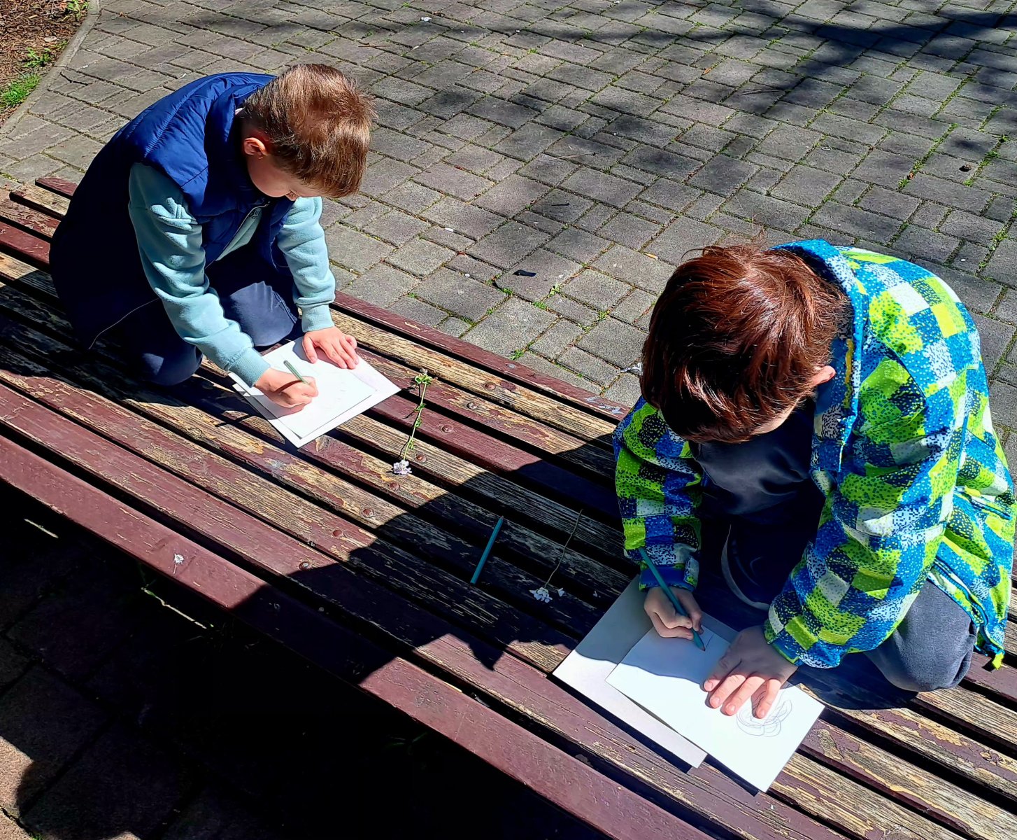 A dnes jsme se ještě vydali na procházku do městského parku, kde děti zkoumaly a poté kreslily zajímavé stromy a rostliny..