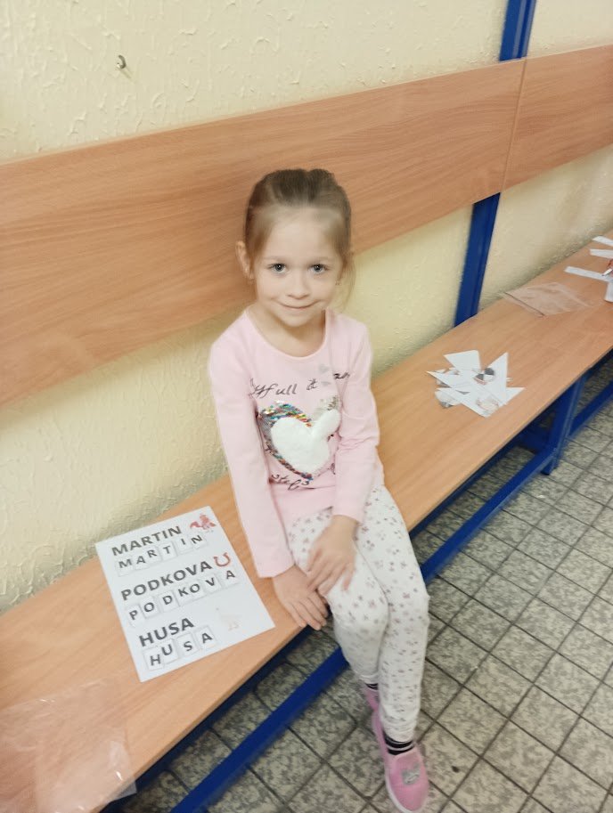 Nejprve jsme se společně seznámili s legendou o Martinovi, vytvořili si lapbook, kde se potrénovalo určování slabik, pravidelné střídání prvků, hledaly se stíny, vybarvovalo se podle čísel. Zahráli jsme si společně hru Já mám, kdo má na podporu slovní zásoby, zkoušeli jsme cválat na židličkách jako Martin na koni a také jsme plnili různé úkoly na stanovištích na chodbě. Děti se tak v pohybu vystřídaly na řadě úkolů, které na ně čekaly. Čas velmi rychle utekl a dva dny s Martinem byly završeny tvorbou husy a koně, které k Martinovi neodmyslitelně patří.
