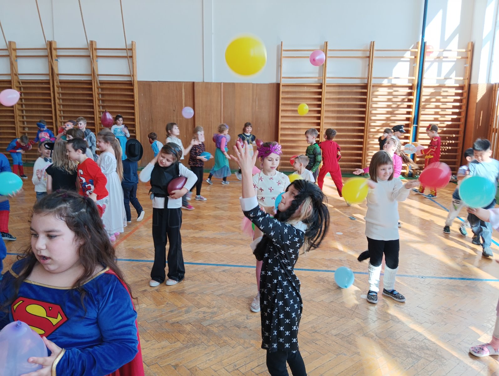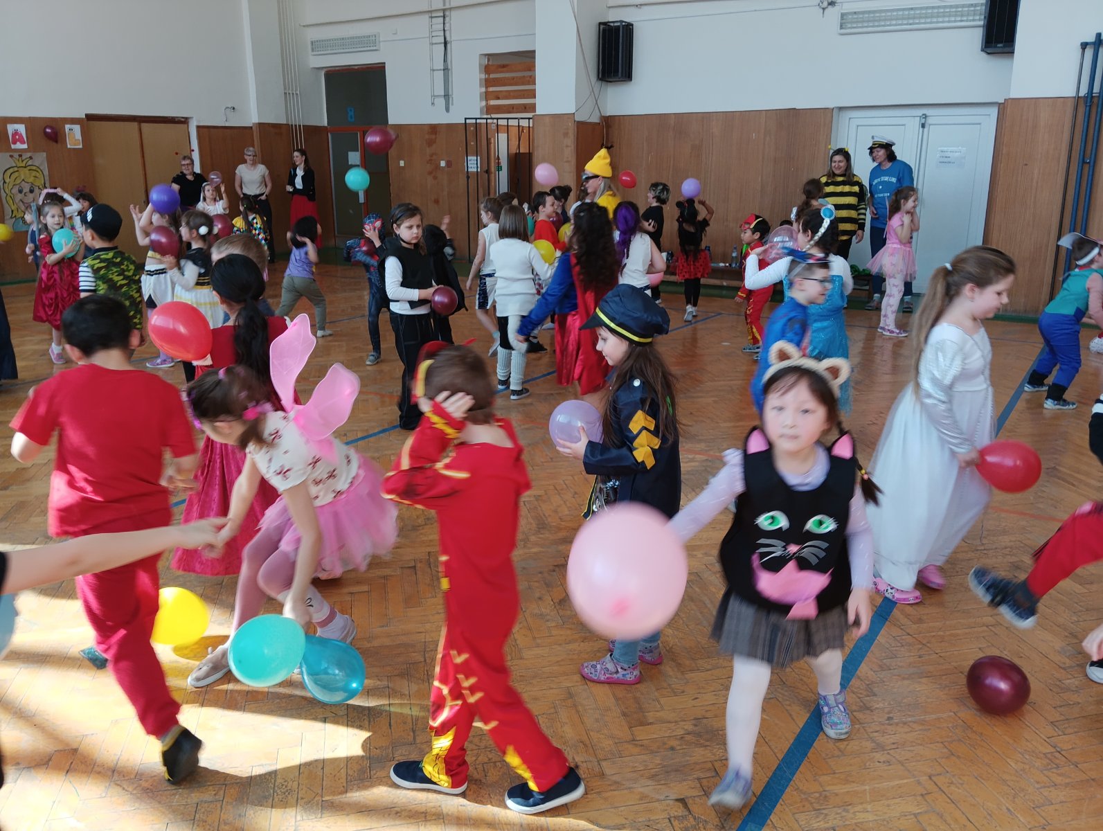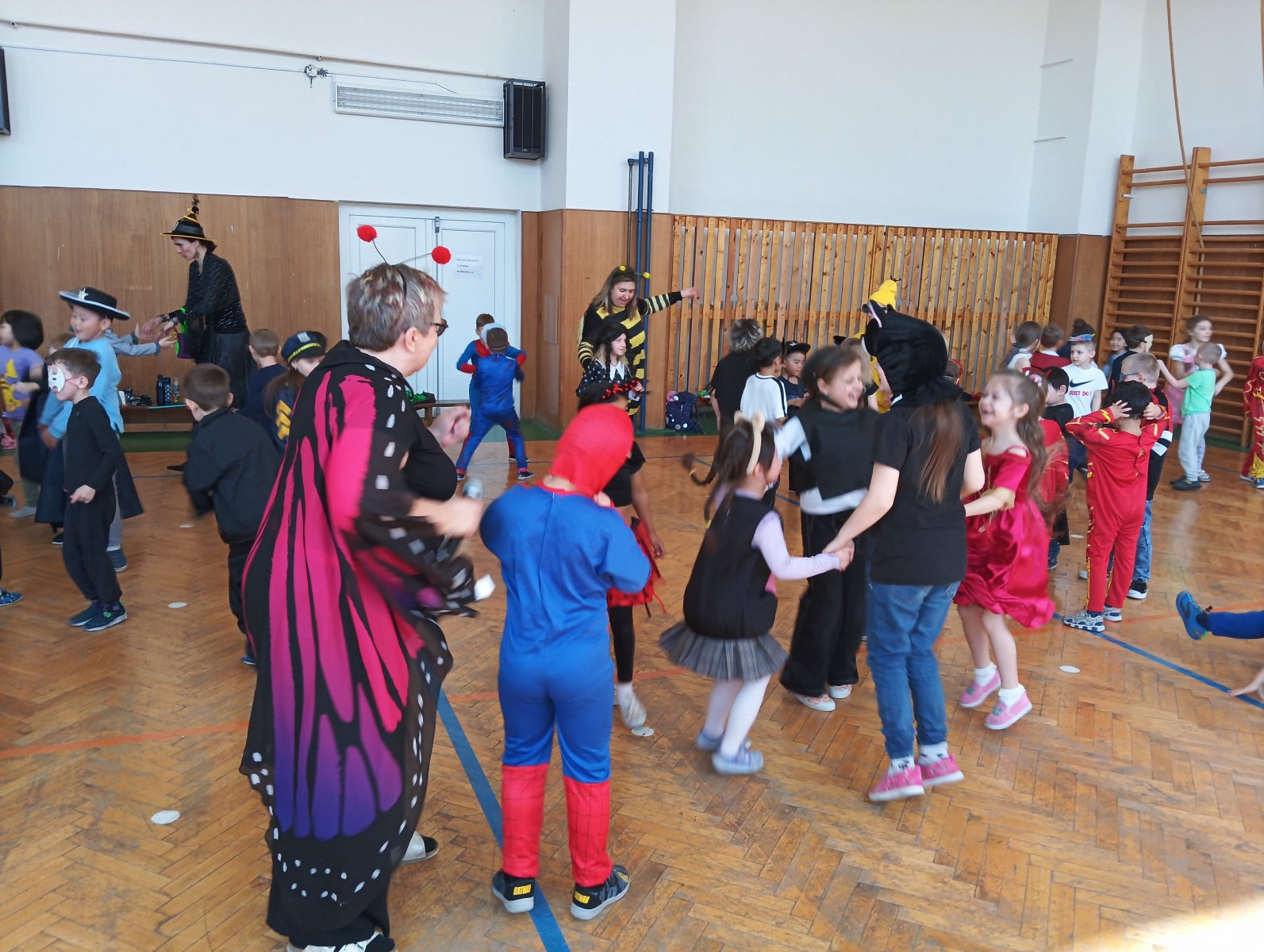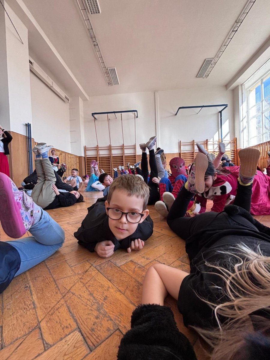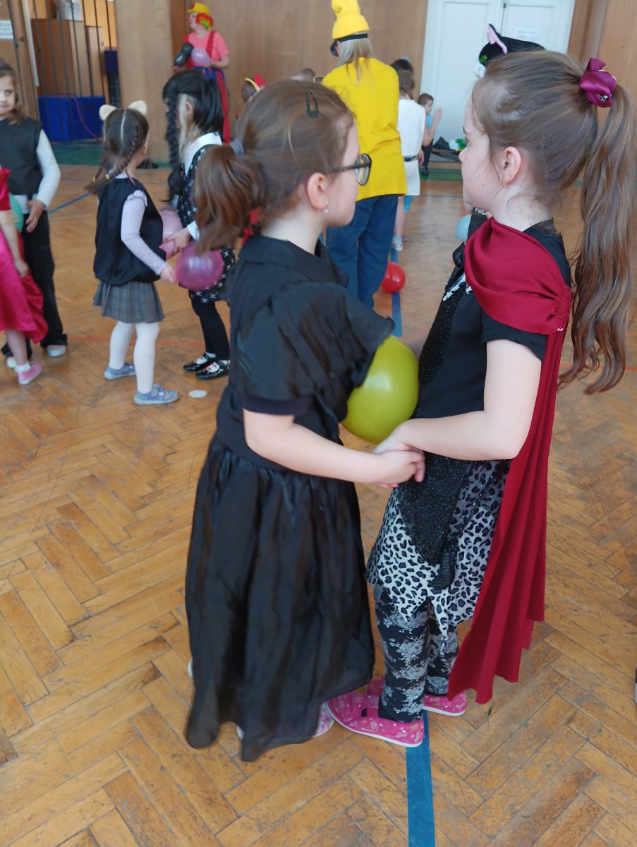 Dopolední výukou se postupně prolínalo karnevalové téma, které vyvrcholilo rejem v maskách v tělocvičně školy. Děti si společně zařádily, naučily se jednoduchý taneček a zvládly i spolupráci s kamarádem při tanci s balónkem. Žízniví a unavení se pak spokojeně všichni vydali na jarní prázdniny.