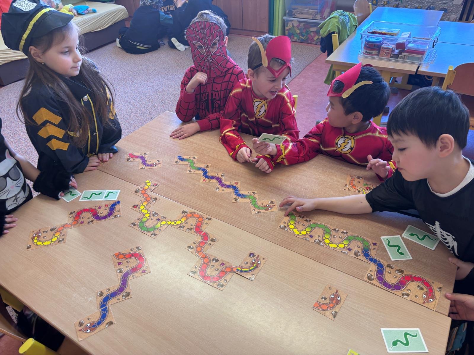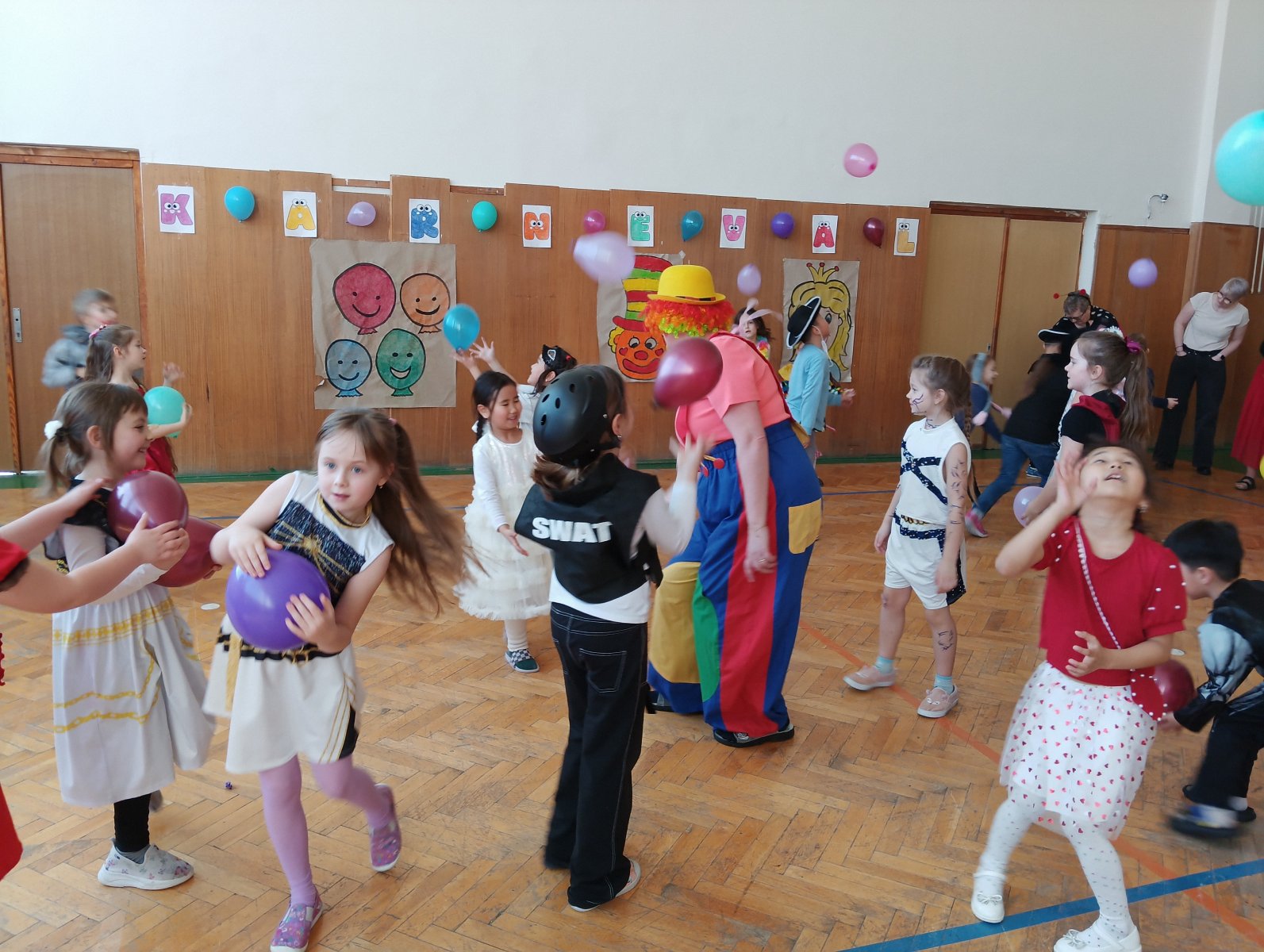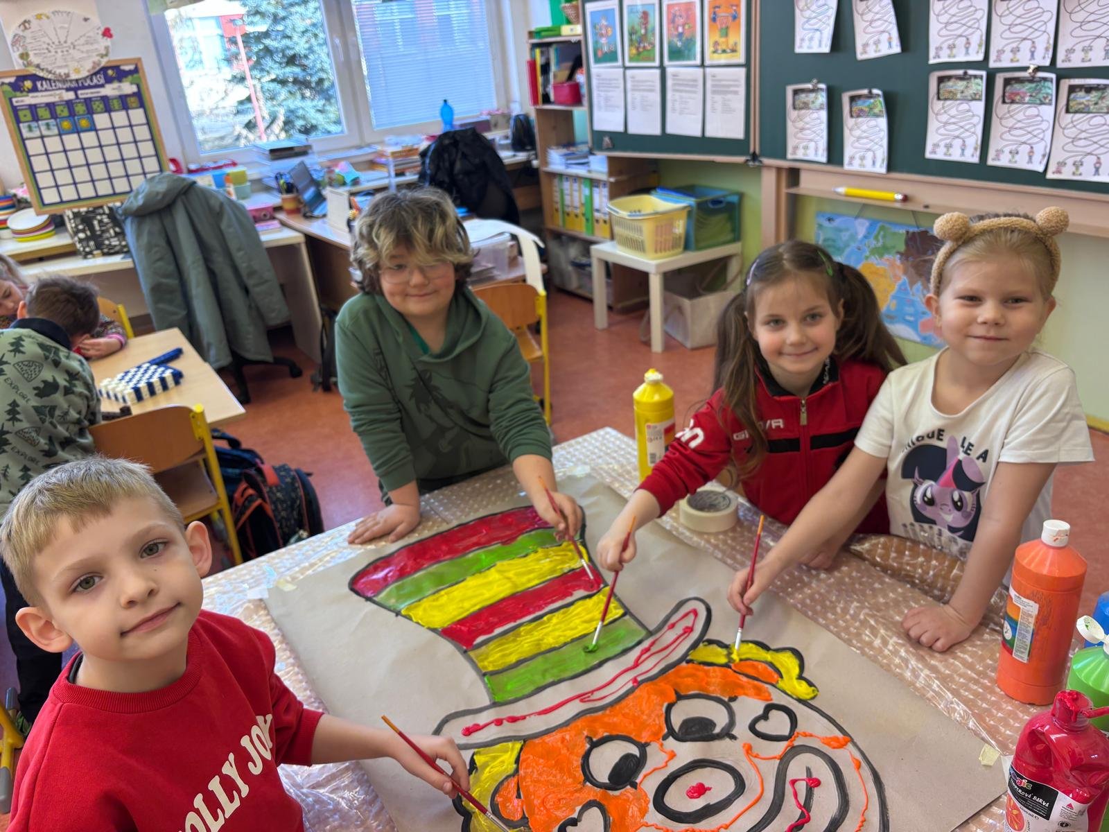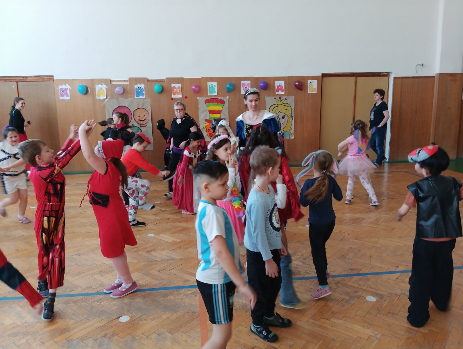 Dopolední výukou se postupně prolínalo karnevalové téma, které vyvrcholilo rejem v maskách v tělocvičně školy. Děti si společně zařádily, naučily se jednoduchý taneček a zvládly i spolupráci s kamarádem při tanci s balónkem. Žízniví a unavení se pak spokojeně všichni vydali na jarní prázdniny.