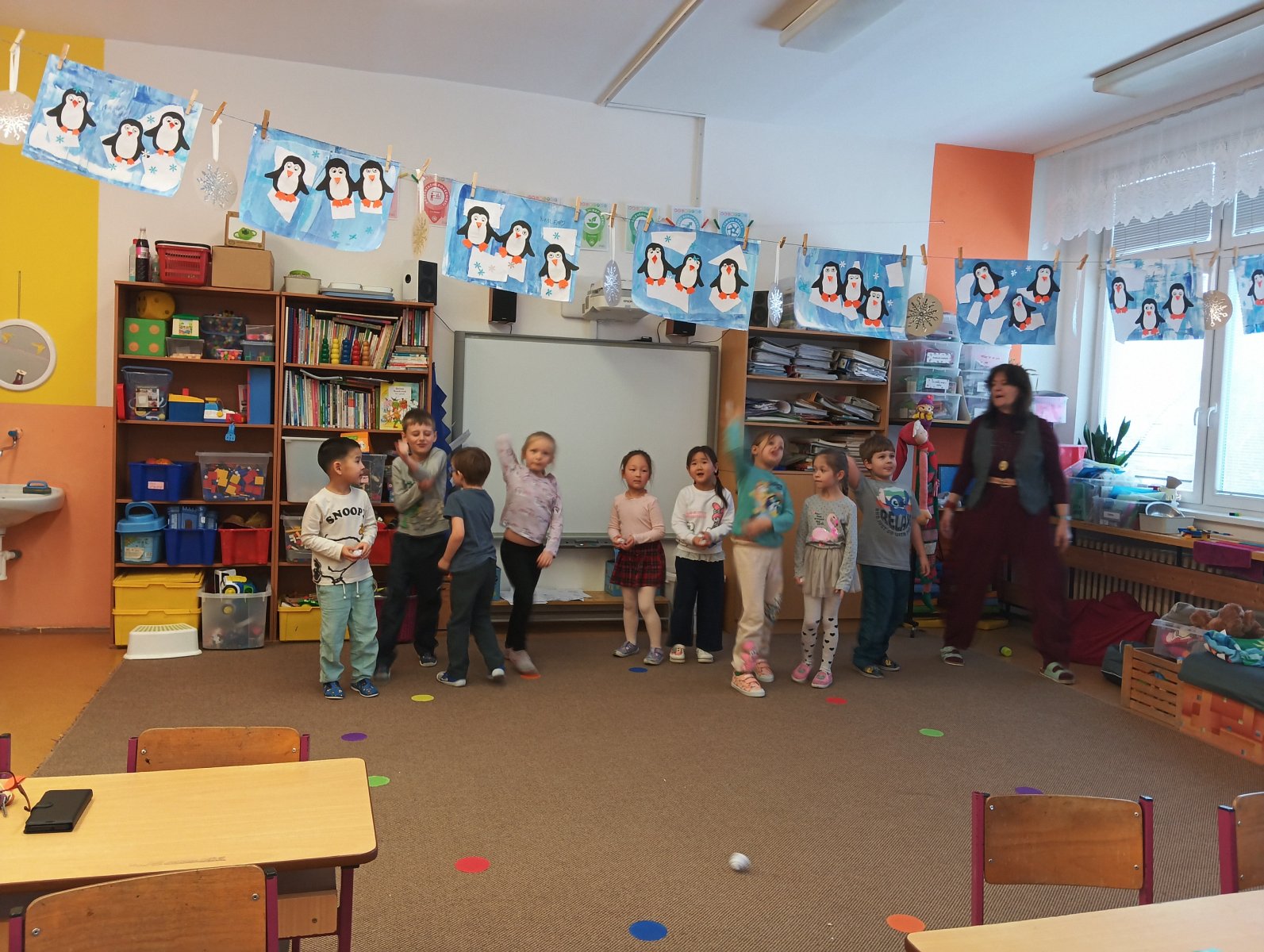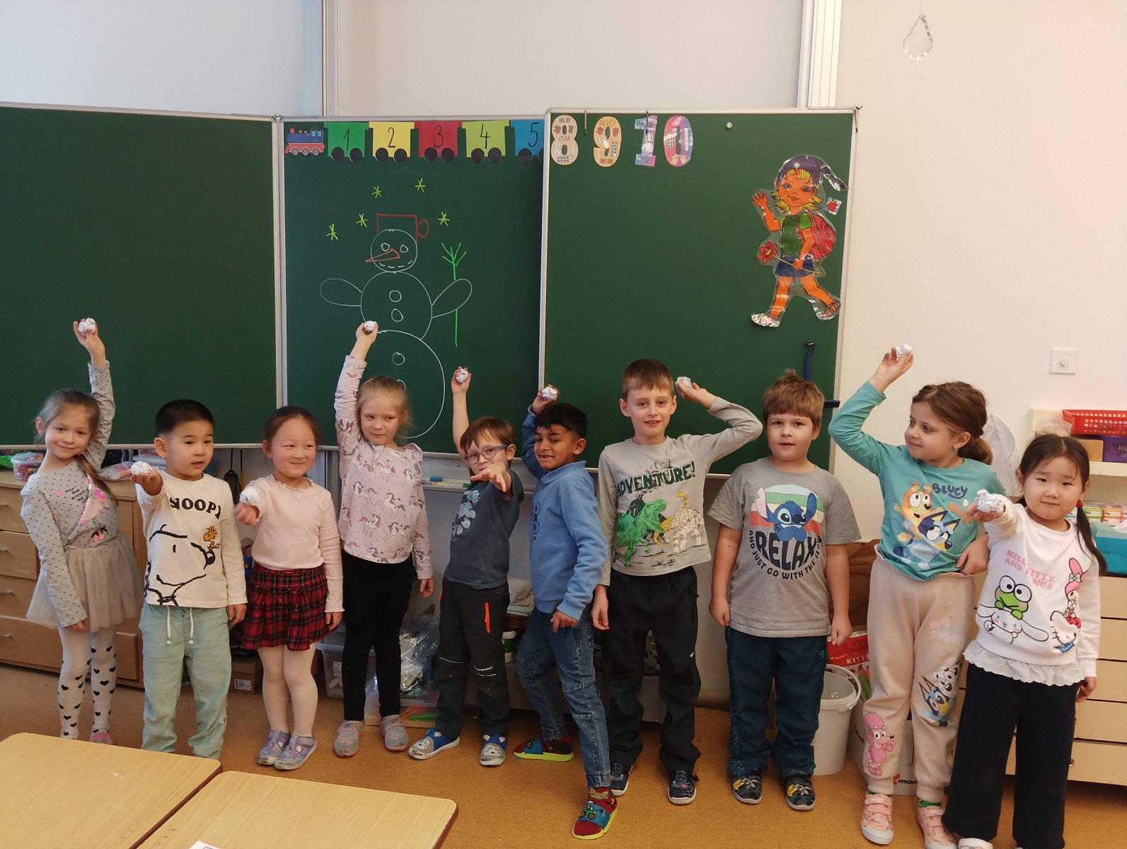 Nejdříve si děti na pracovním listě porovnaly velikosti sněhuláků, pak spočítaly z kolika jsou uděláni koulí. Vyzkoušely paměť, když vzpomínaly, jakou měl který sněhulák čepici. Nejlepší ale přišlo nakonec. Po kontrole jim z pracovního listu zbyla koule, jako stvořená na správnou bitvu. Také se házelo do výšky a do dálky na cíl. Cílem nebyla paní učitelka, ale sněhulák nakreslený na tabuli.