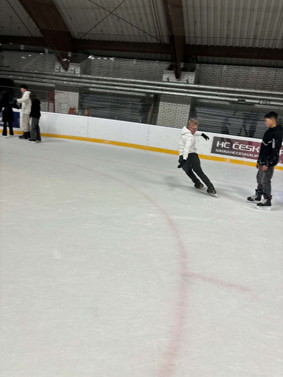 Ledová plocha se proměnila v rej plný smíchu a energie. Na ledě se potkali všichni bez rozdílu dovedností. Zatímco zkušení bruslaři s lehkostí řezali zatáčky a zkoušeli odvážné piruety, začátečníci statečně bojovali s rovnováhou. Bylo skvělé sledovat, jak si spolužáci vzájemně pomáhají – stačilo pár rad od zkušenějších a i ti, co stáli na bruslích poprvé, brzy s jistotou kroužili po stadionu.