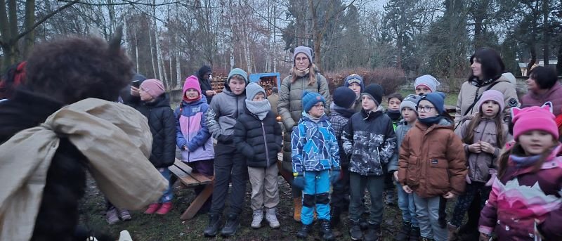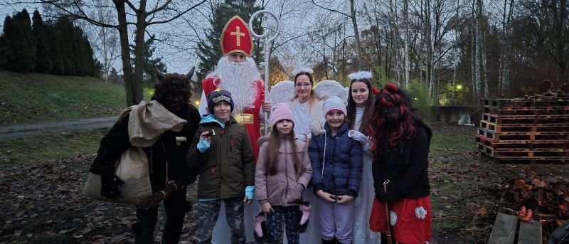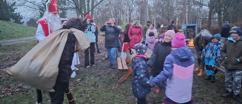 Už od začátku panovala příjemná atmosféra, přestože počasí nám tentokrát příliš nepřálo. Akci jsme zahájili čertí stezkou, na které čekalo deset zábavných úkolů. Žáci ji prošli s nadšením a všichni úspěšně splnili jednotlivá stanoviště. Po stezce se děti přesunuly k ohništi. Oheň se nám zpočátku nedařilo zapálit, ale nakonec pomohl jeden z tatínků, který ochotně přiložil ruku k dílu. Díky tomu si všichni mohli opéct svůj vuřt a užít si malé předvánoční setkání. Na akci dorazili také Mikuláš, anděl a čert. Žáci jim zazpívali a přednesli připravené básničky, za což si vysloužili úsměvy i drobnou odměnu. Celé odpoledne proběhlo ve velmi milém duchu, a i přes nevlídné počasí se akce vydařila.