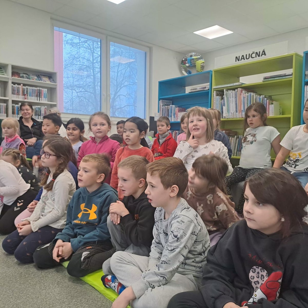 Ve středu šli žáci ze všech prvních tříd podívat do knihovny na dvě krásné, známé pohádky: Jak pejsek s kočičkou umývali podlahu a Jak pejsek s kočičkou pekli dort.