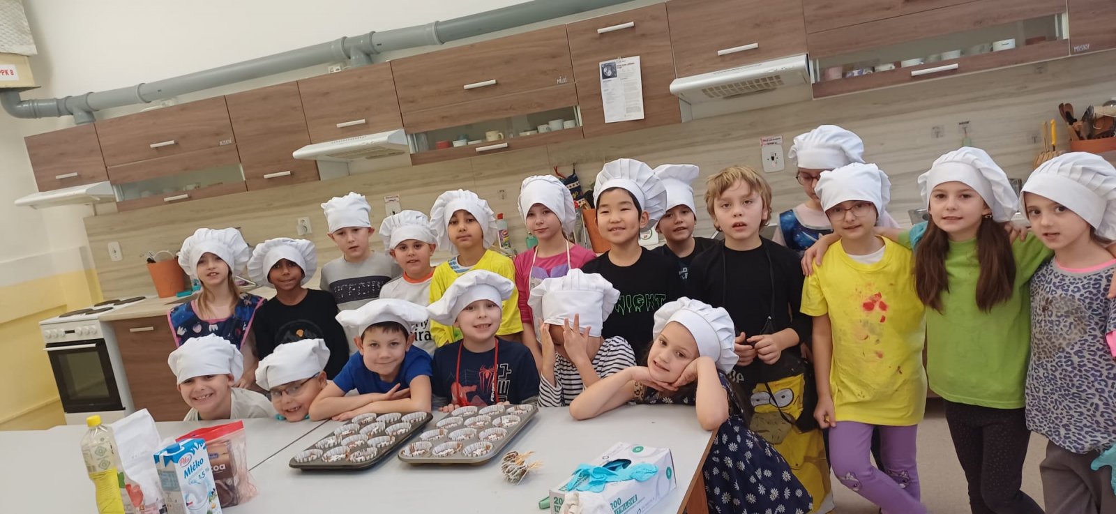 Se zájmem sledovaly celý postup přípravy těsta, s nadšením se pouštěly do míchání, zdobení a pečení. Odměnou jim byly sladké muffiny, které rády nabídnou i rodičům na pátečním vánočním jarmarku.