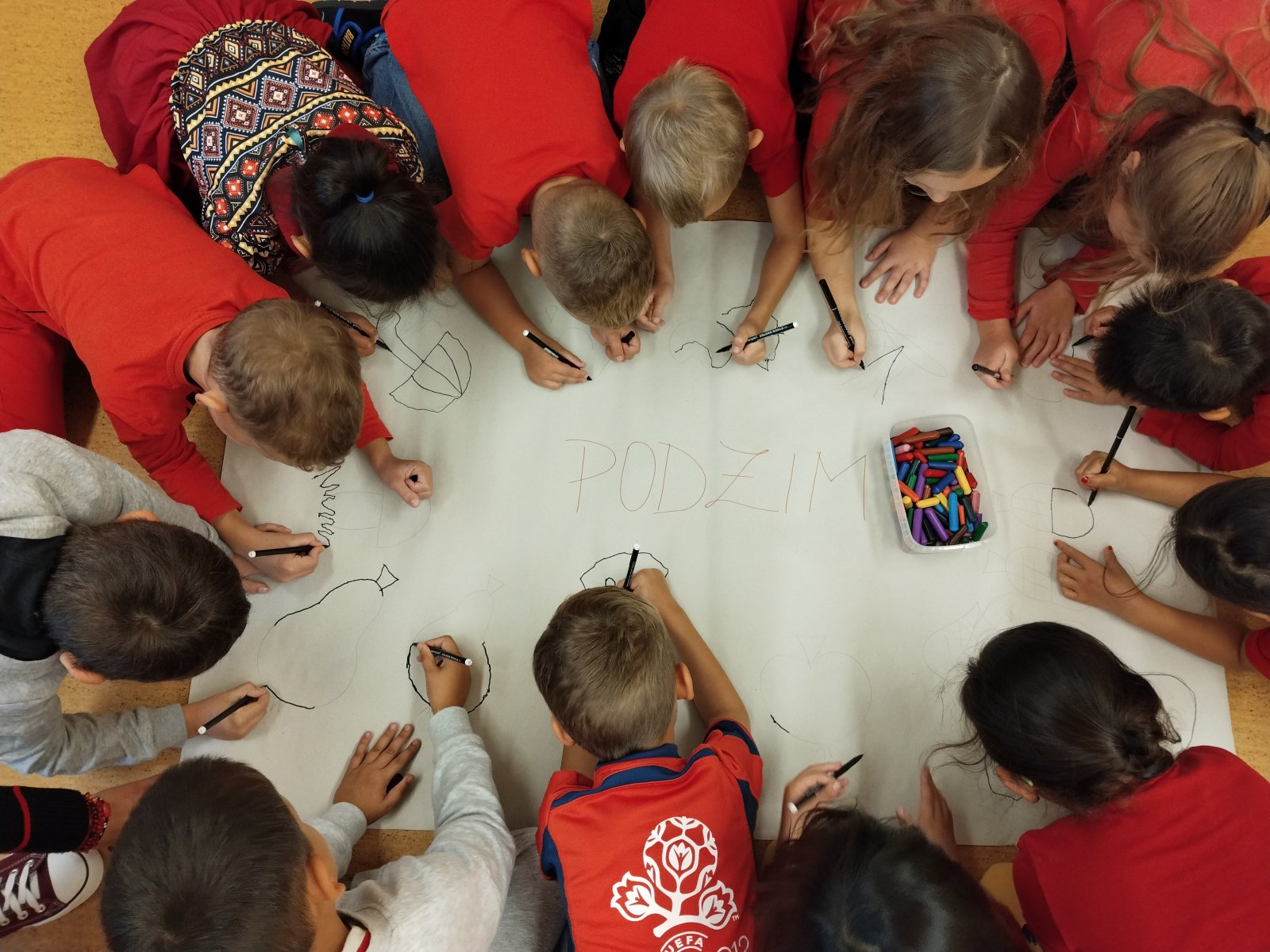 S tímto dnem souvisela řada aktivit, které se postupně prolínaly celým dnem od ranního kruhu až po aktivity na chodbách školy a nebo výtvarné tvoření ve třídě. Děti se nenásilnou a hravou formou seznámily se znaky podzimu, rozvíjely grafomotoriku, pracovaly s přírodninami, trénovaly paměť a postřeh. Celý den rychle utekl a ve hravém učení budeme pokračovat v dalších dnech nejen ve třídě a chodbách školy, ale i v našem krásném zahradním areálu. Téma podzimu je k tomu jako stvořené.
