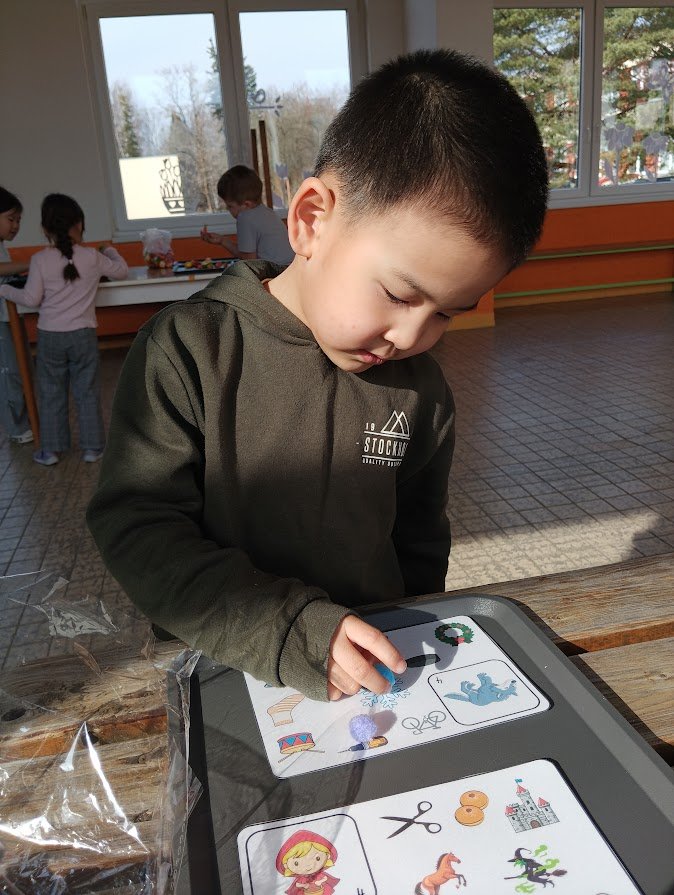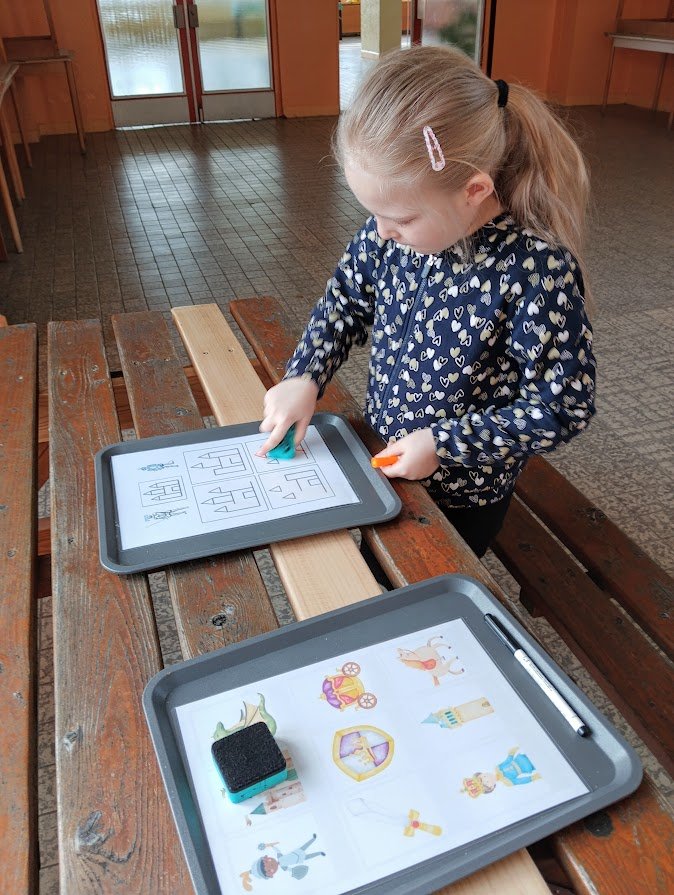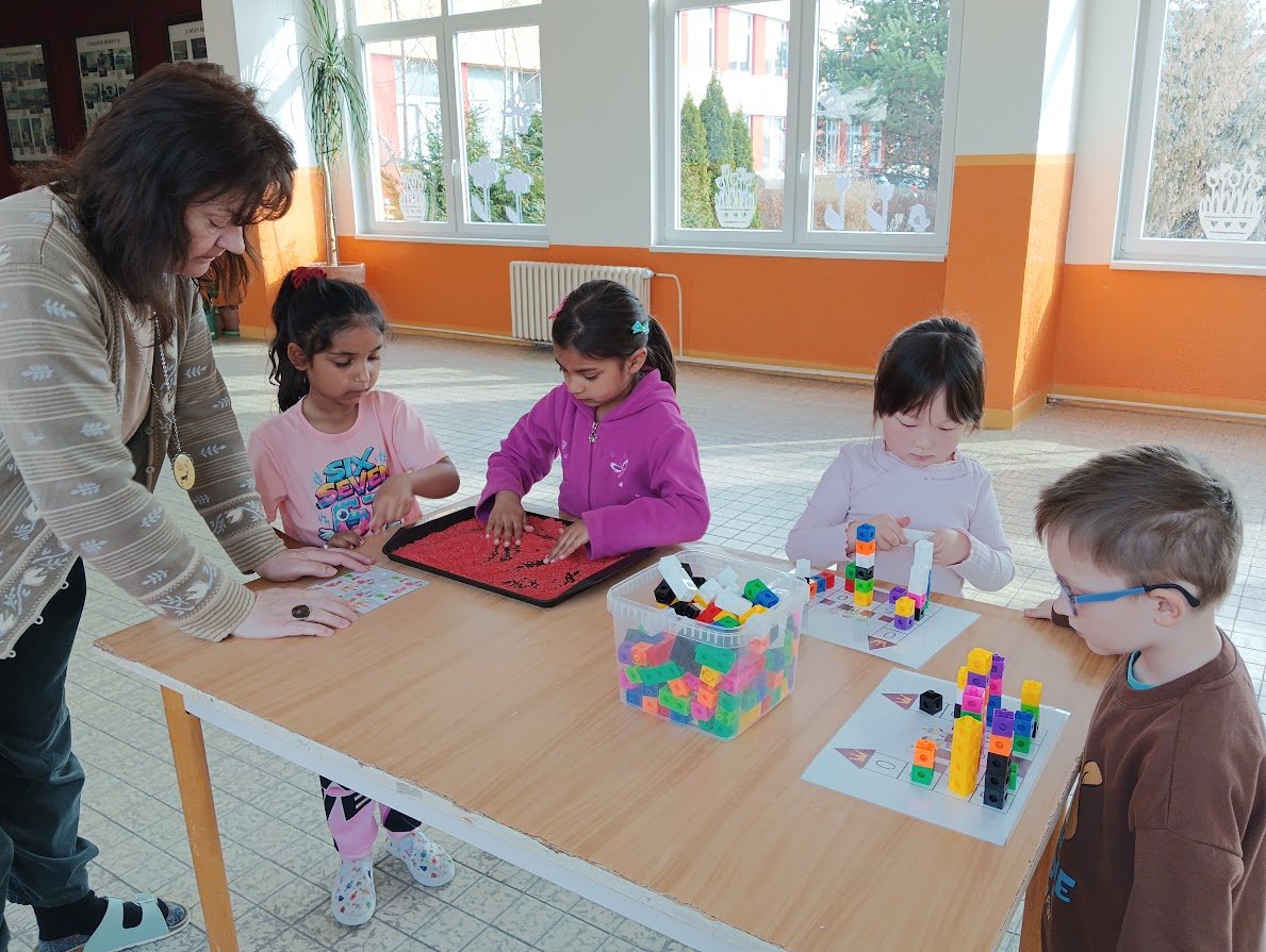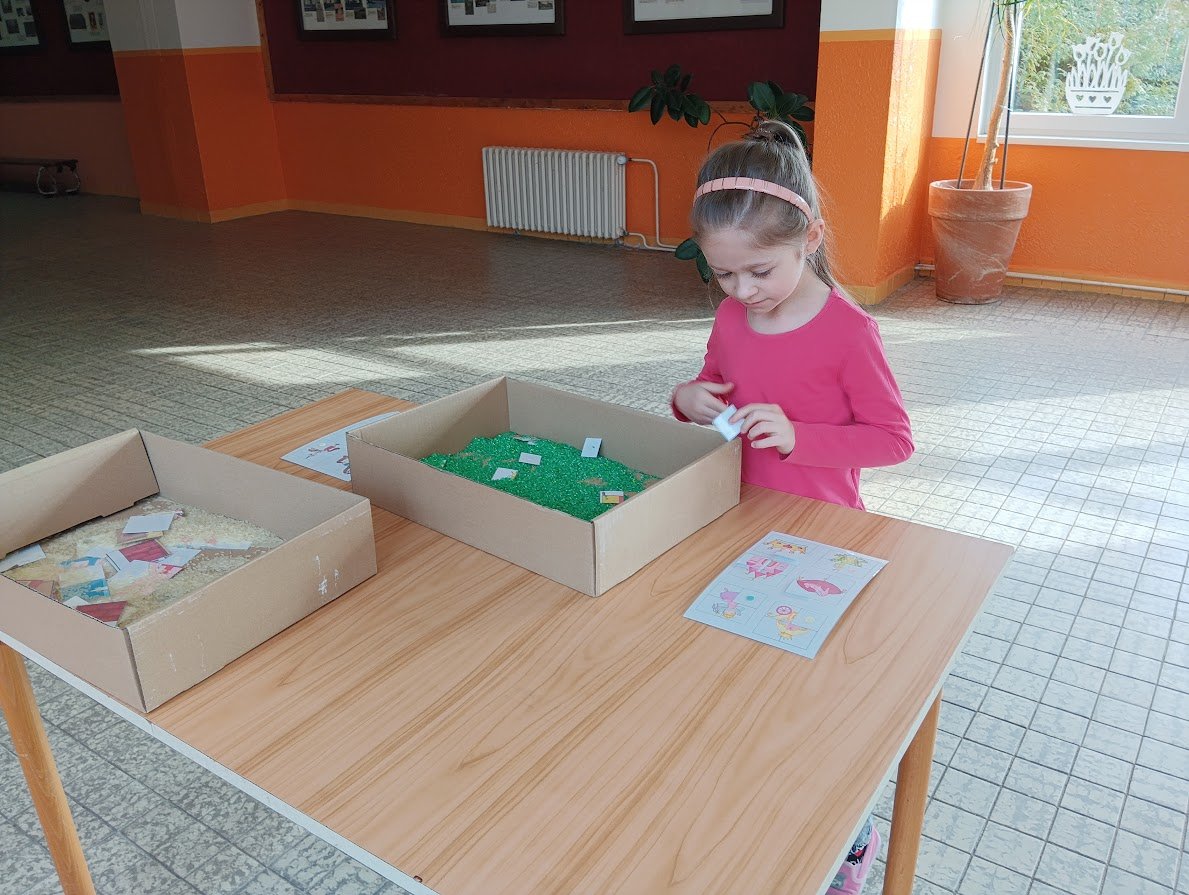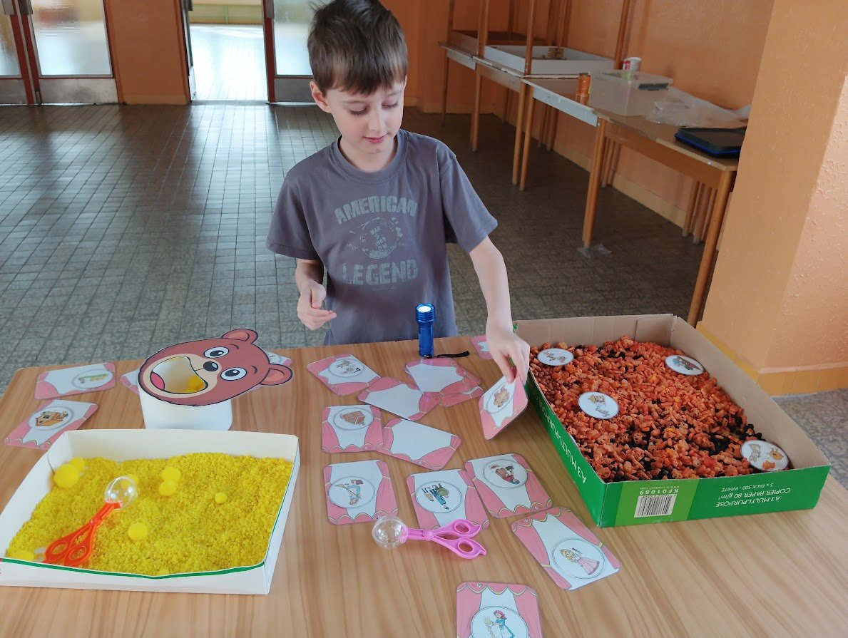 Během plnění připravených aktivit prozkoumaly různé materiály, procvičily prstíky a spolupráci při plnění úkolů. Všichni se snažili si vyzkoušet všechna stanoviště a pod dohledem paní učitelky a asistentky také zvládli určovat první písmenko ve slově, spočítat počet kostek na stavbu hradu a nebo určit počet a délku slabik ve slově.