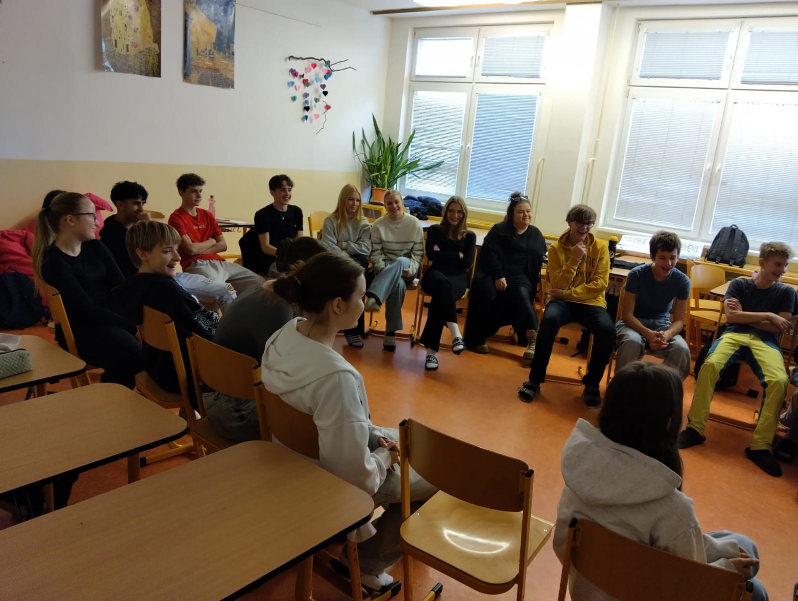Beseda přinesla spoustu praktických informací a podnítila žáky k zamyšlení nad tím, jaká rozhodnutí dělají a jak jsou za ně zodpovědní. Atmosféra byla otevřená, podnětná a zaměřená na prevenci a podporu bezpečného chování.