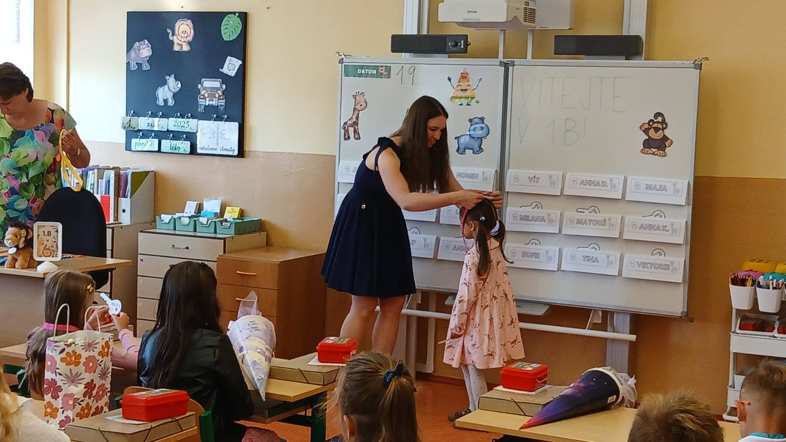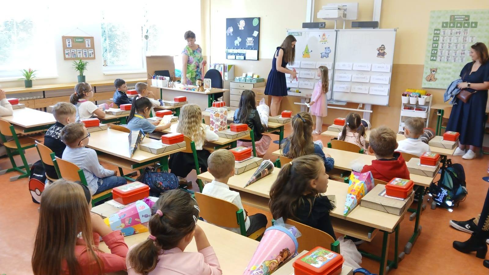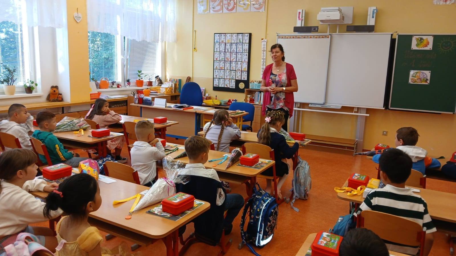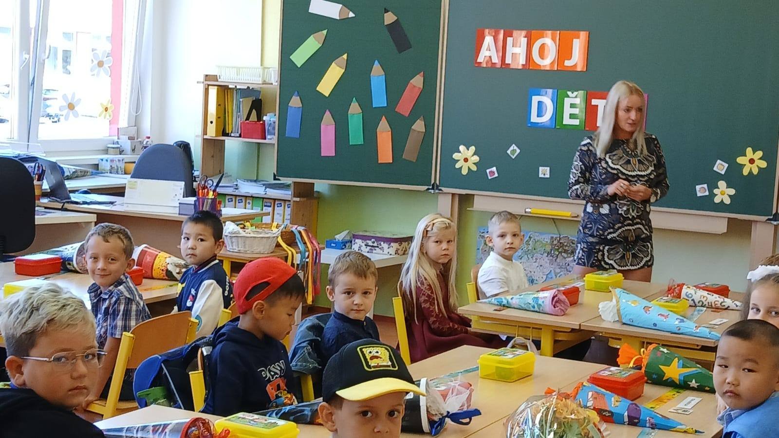 Po úvodním představení třídních učitelek, asistentek pedagoga a vychovatelek zamířily děti do svých tříd a poprvé zasedly do školních lavic.
