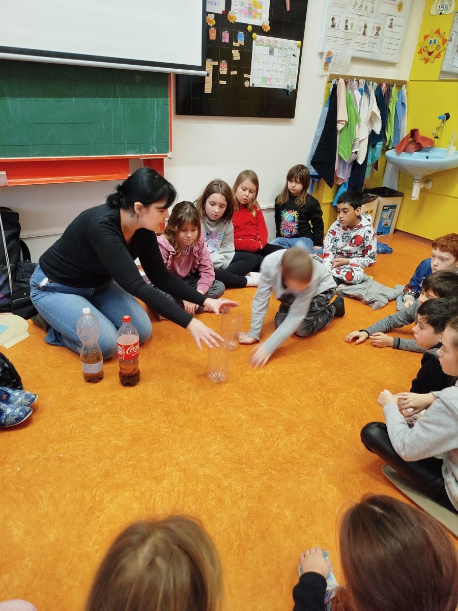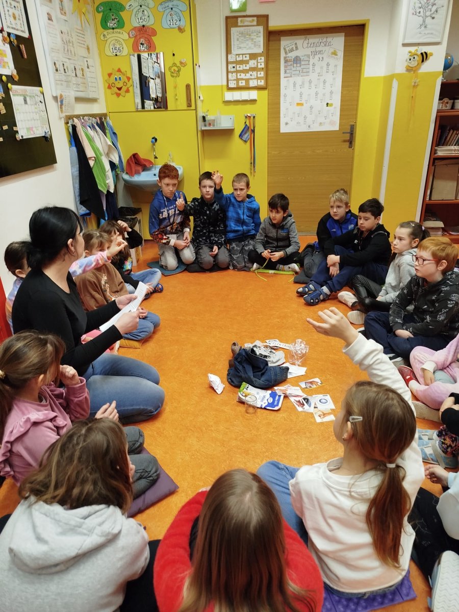 V další části se žáci rozdělili na „řeku“ a „rybník“ a třídili, co kde můžeme najít a kdo vodě pomáhá zůstávat čistou. Zaměřili se také na odpad a věci, které do kanalizace rozhodně nepatří. Na závěr si vyzkoušeli i filtrování vody.