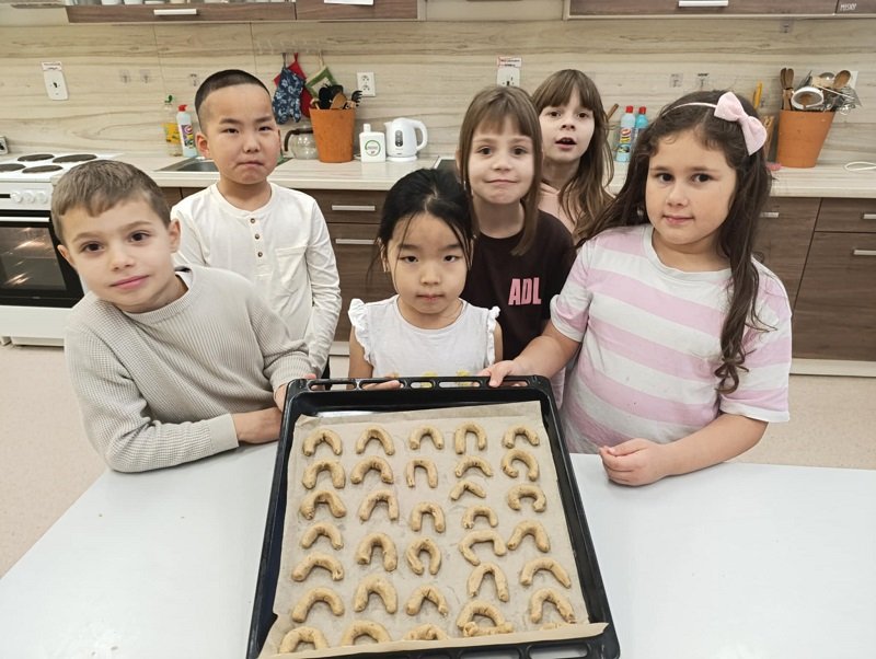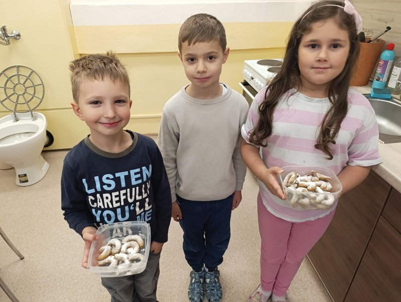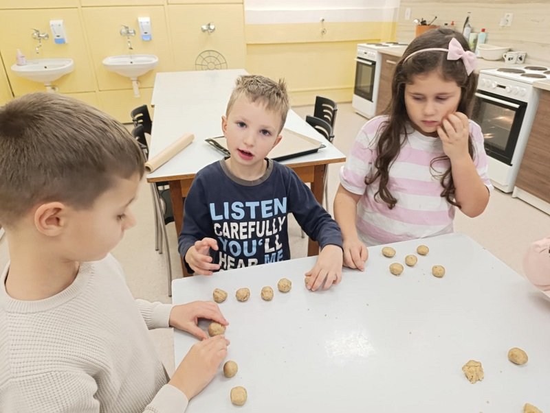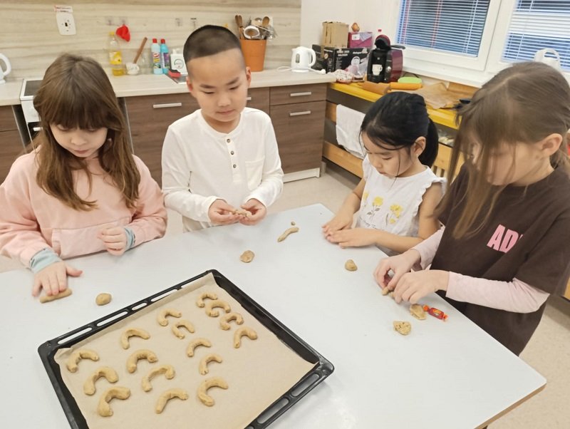 Pro některé žáky to byla první návštěva této kouzelné učebny. Po seznámení s pravidly a bezpečností, se všichni pustili do hrátek s těstem na vanilkové rohlíčky. Nejdříve kulička, pak váleček… byla to fuška, ale nakonec se dílo podařilo. Plný plech voňavých rohlíčků jsme upekli, obalili v moučkovém cukru, a odpoledne v oddělení školní družiny společně ochutnávali.