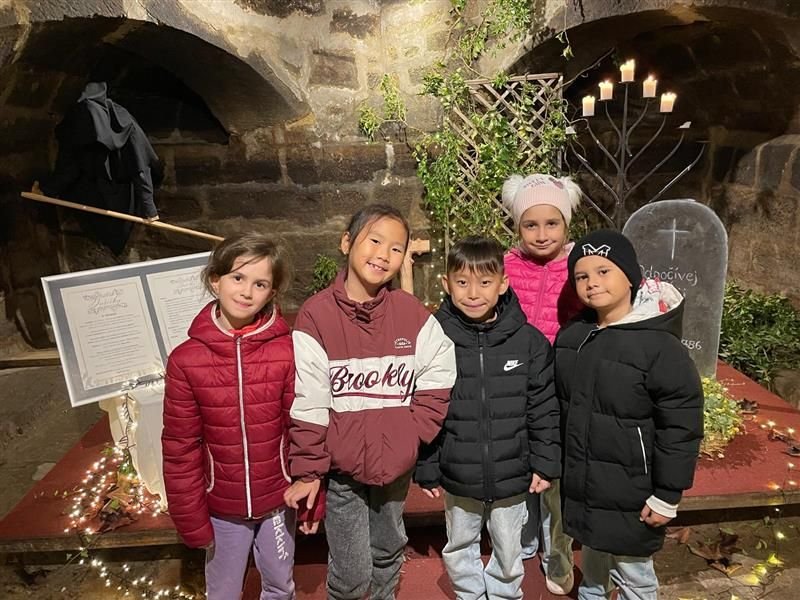 V těchto dnech navštívily průběžně děti, z 1., 3. a 7. oddělení, se svými vychovatelkami a asistentkami sklepení Vodního hradu, kde probíhala komentovaná prohlídka s názvem "Od Dušiček po Lucii".