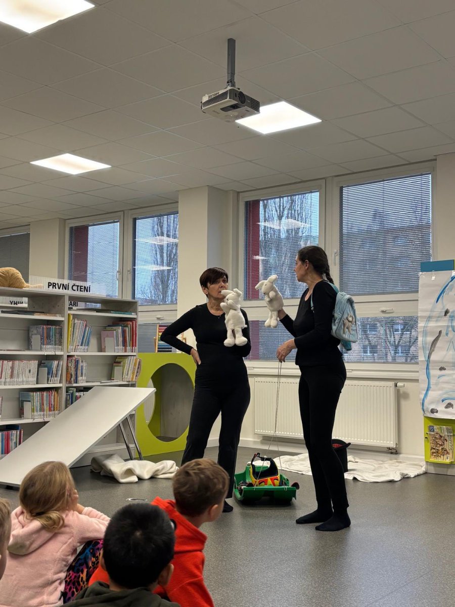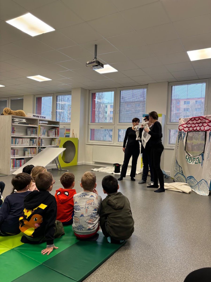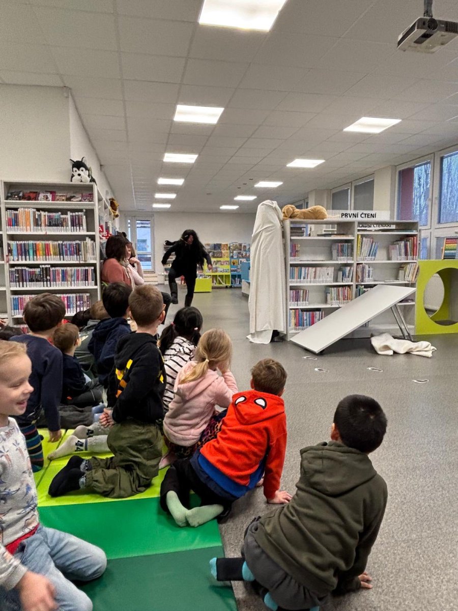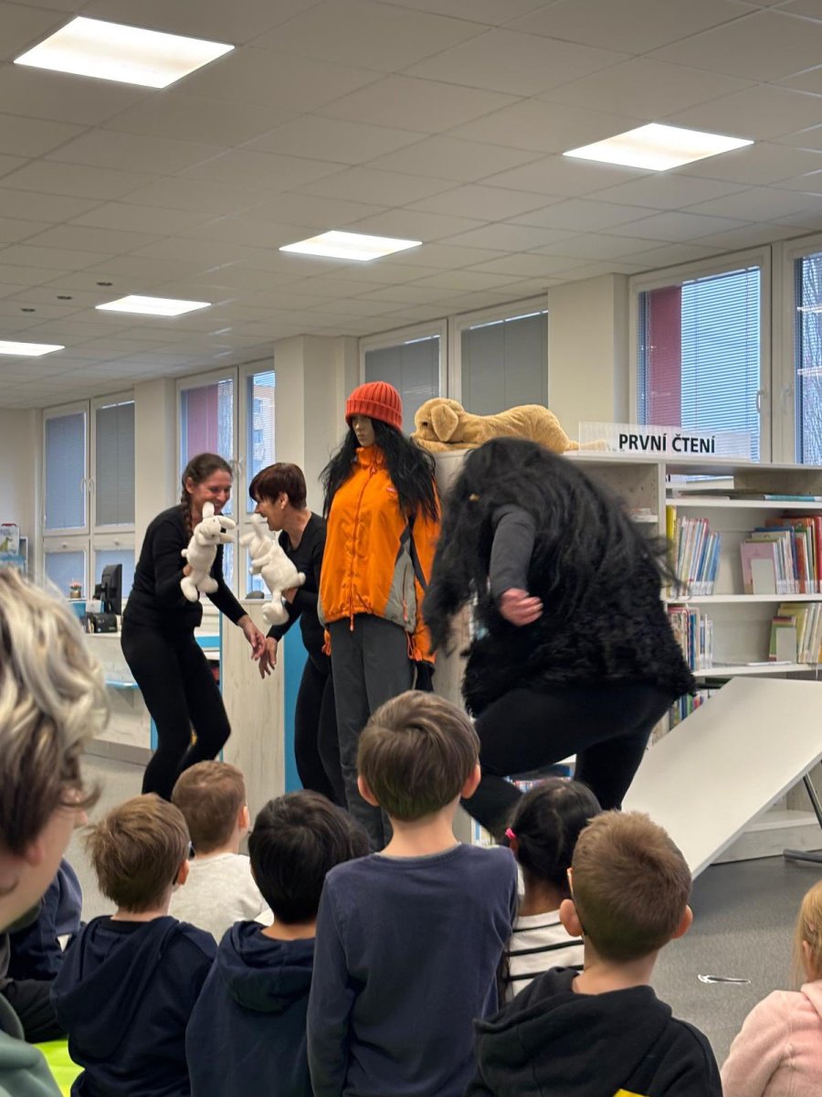 Děti z přípravných tříd to zažily na vlastní kůži. Knihovna se proměnila na naše největší hory Krkonoše i se zasněženým Špindlerovým Mlýnem a paní knihovnice v dokonalé postavy z pohádky Bob a Bobek na horách. Za zimními radovánkami se do Špindlu vydali králíci z klobouku Bob a Bobek. Jenže netušili, co je čeká. V Krkonoších se usídlil Yetti a všechny turisty vyhnal. Bob a Bobek našli odvahu a rozhodli se, že všechno dají do pořádku. A tak děti během chvilky zažily s králíky koulovačku, honičku, zasypání lavinou i pomoc Yettimu. Nakonec všechno dobře dopadlo a všichni si přišli na své... králíci si užili pobyt na horách, Yetti už nebyl sám a děti se přesvědčily, že v pohádce je dobro, zlo, legrace, láska, odvaha i ponaučení. Moc děkujeme za herecké výkony všem skvělým paním knihovnicím a těšíme se zase příště! Prý to bude pohádka O pejskovi a kočičce.