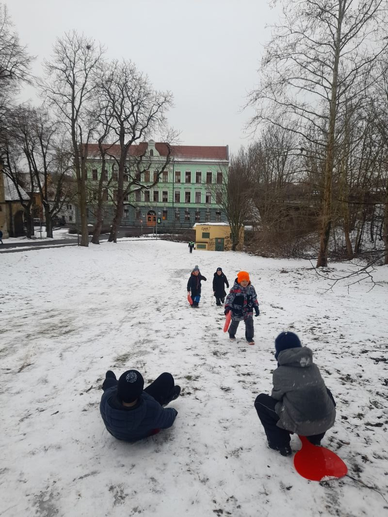 Na začátku nového roku nenapadl sníh, tak jsme si zimu začali tvořit. Děti opět malovaly, kreslily, lepily, stříhaly, a tak vznikly velmi hezké práce. Zdobí oddělení i chodby družiny. Nezapomněli jsme ani na blížící se olympiádu. S dětmi o ní besedujeme a vyhledáváme, kterým našim borcům budeme fandit. Projekci máme připravenou. Některé paní vychovatelky se také vydaly s dětmi nakrmit zvířátka a ptáčky. A nakonec jsme se dočkali i sněhu, tak pokud jsou dobré podmínky pro bobování, vyrážíme každý den na nejbližší kopce. Díky tomu tráví děti dost času venku, a posilují svojí fyzickou kondici, ať už je to třeba jen při stavění sněhuláků a koulování. Zimní měsíce jsou tak u nás plné společných zážitků, kreativity a radostného pohybu, který dětem přináší nová dovednosti a nadšení.